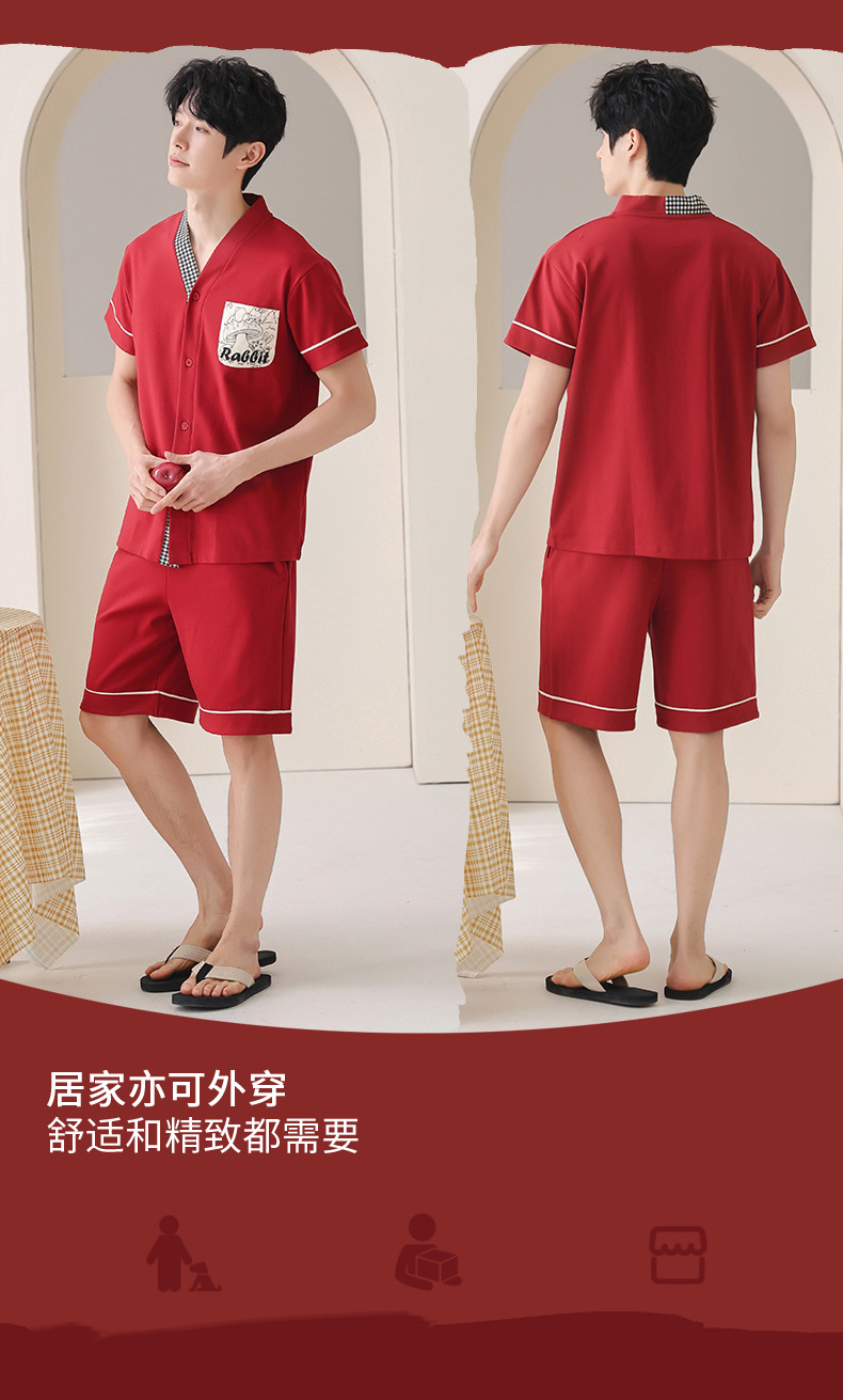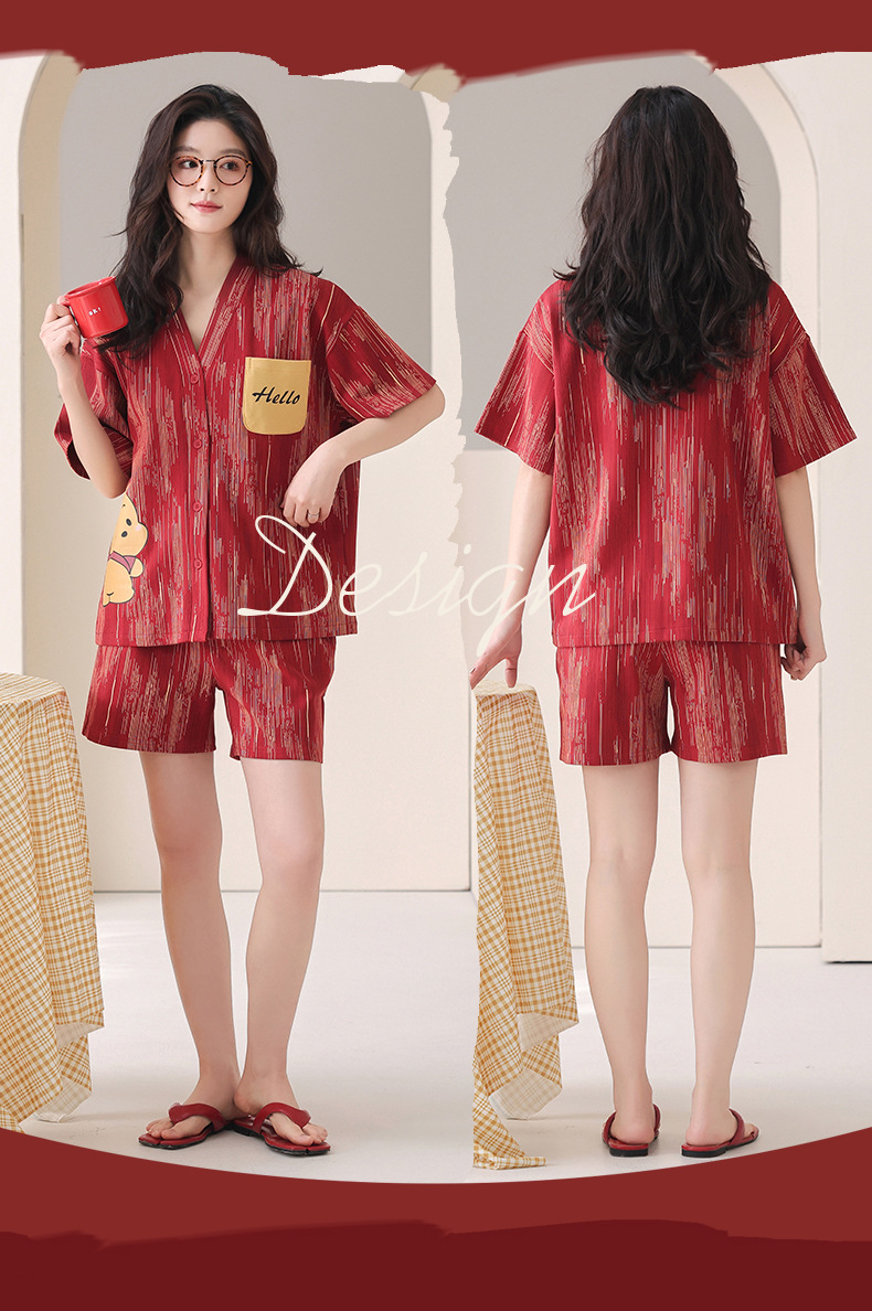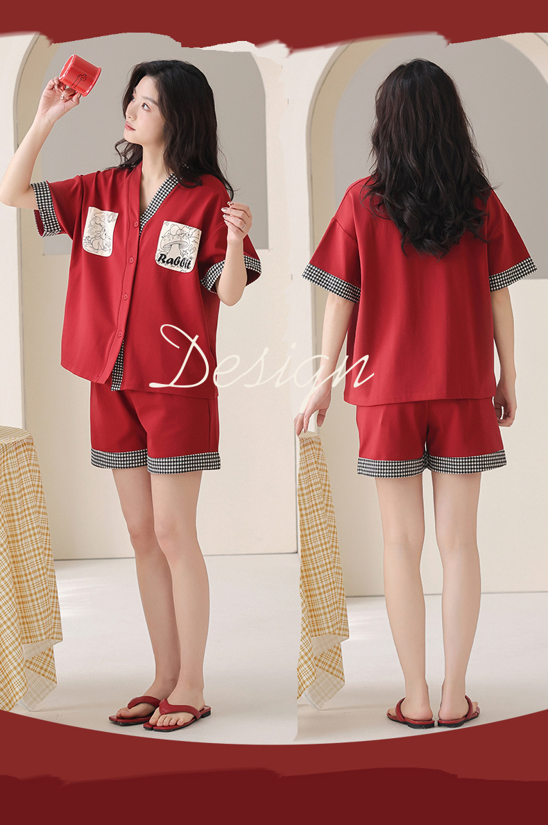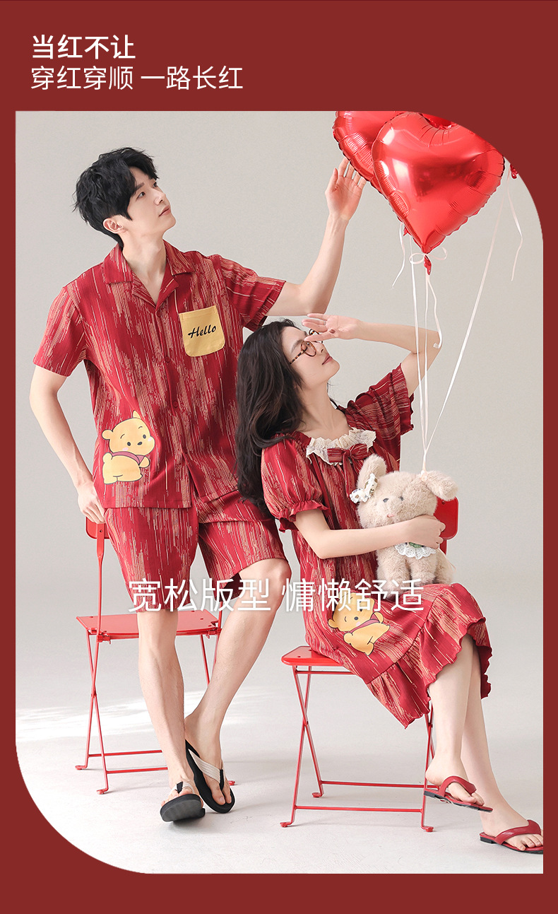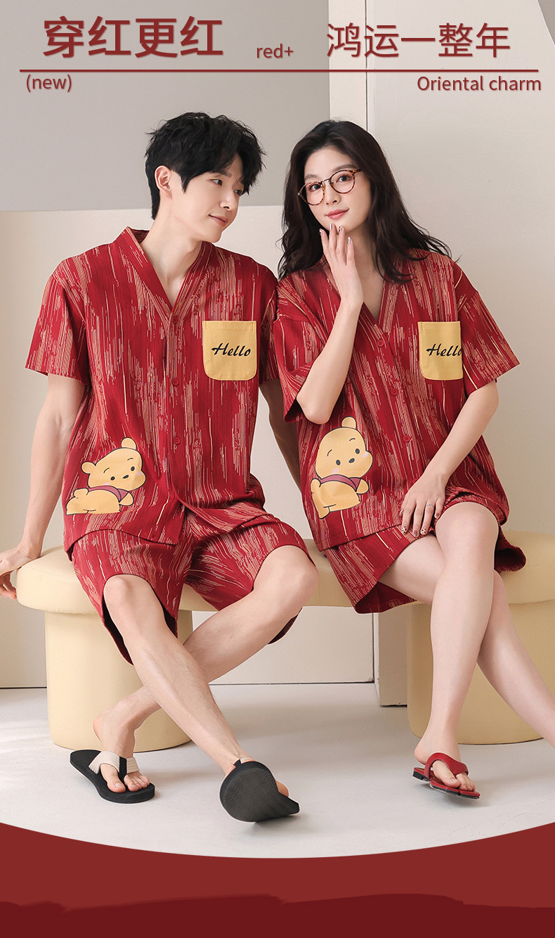 커플 잠옷 여름 코튼 반팔 웨딩 축제 년 레드 얇은 코튼 홈 의류 세트스토어 가기