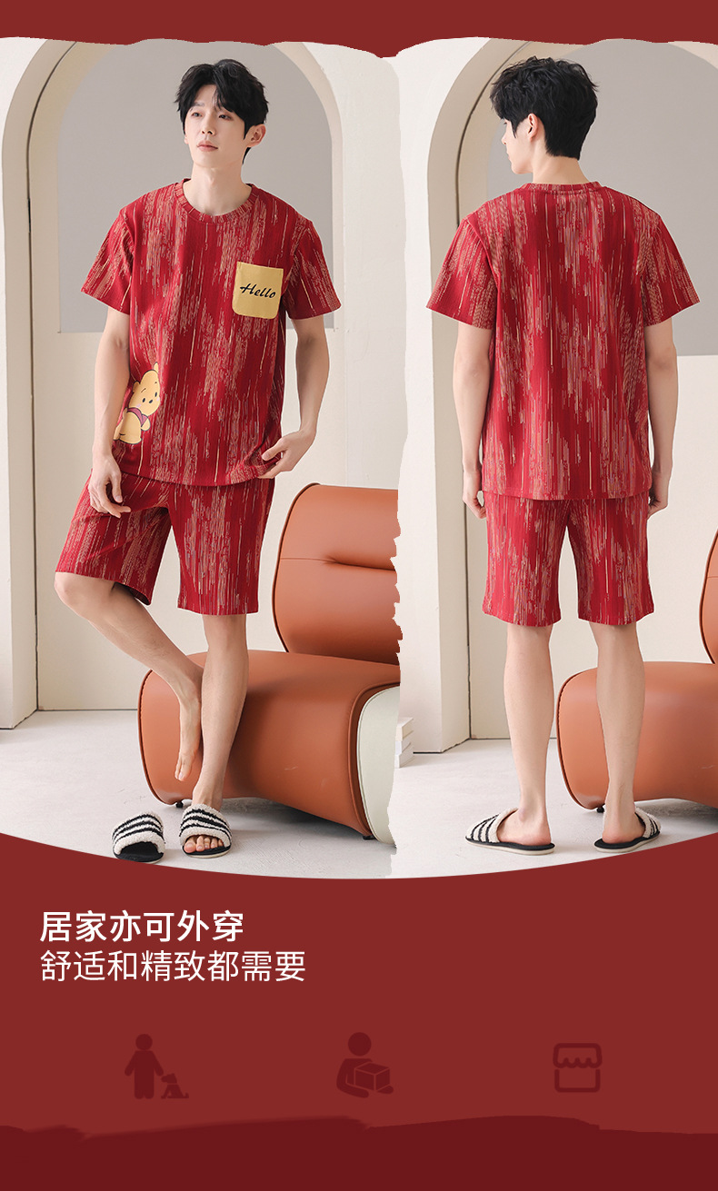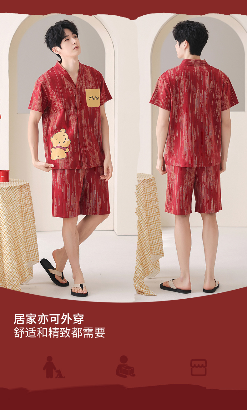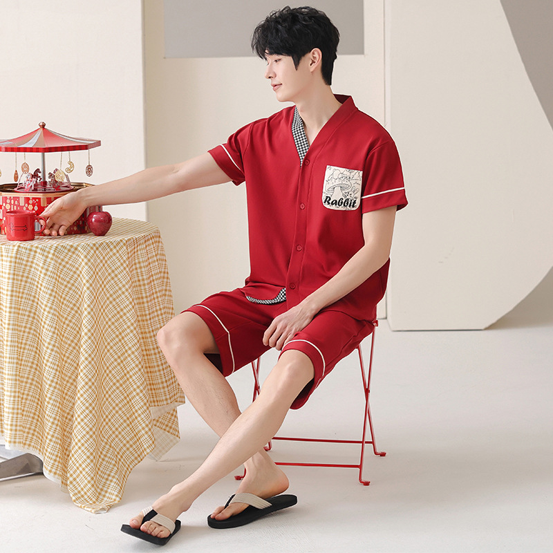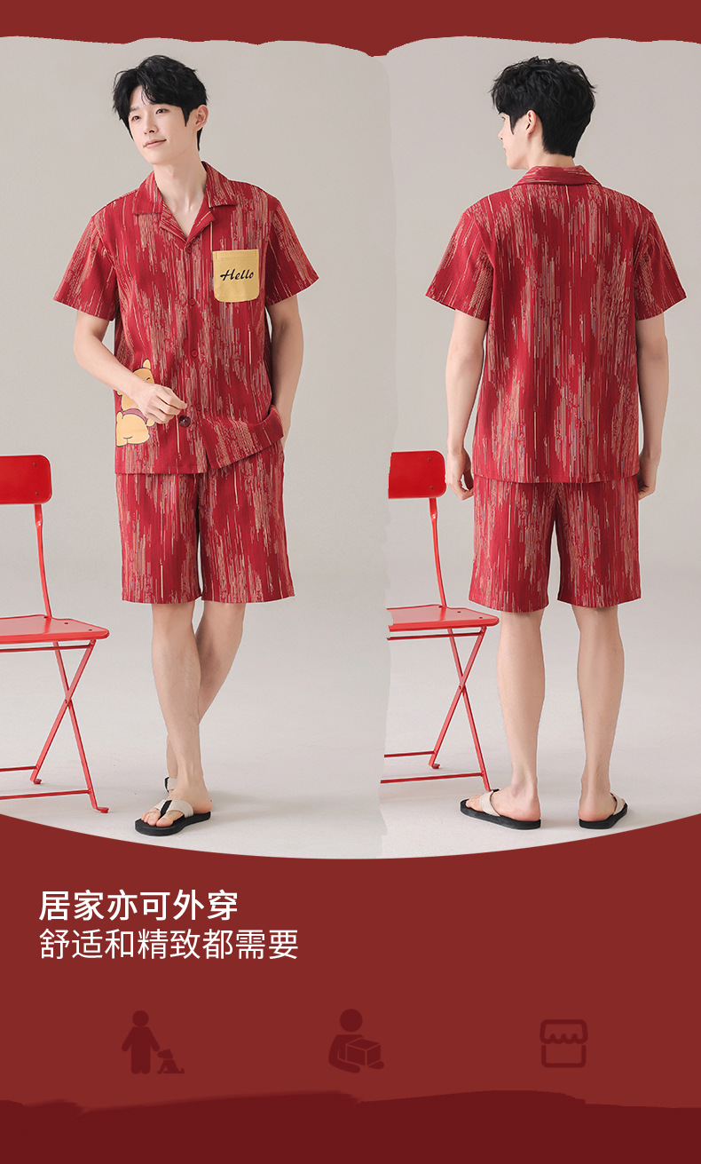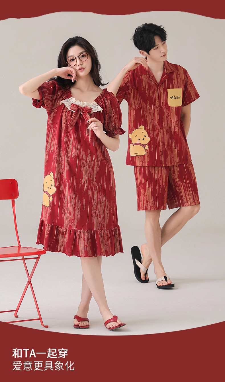 커플 잠옷 여름 코튼 반팔 웨딩 축제 년 레드 얇은 코튼 홈 의류 세트스토어 가기