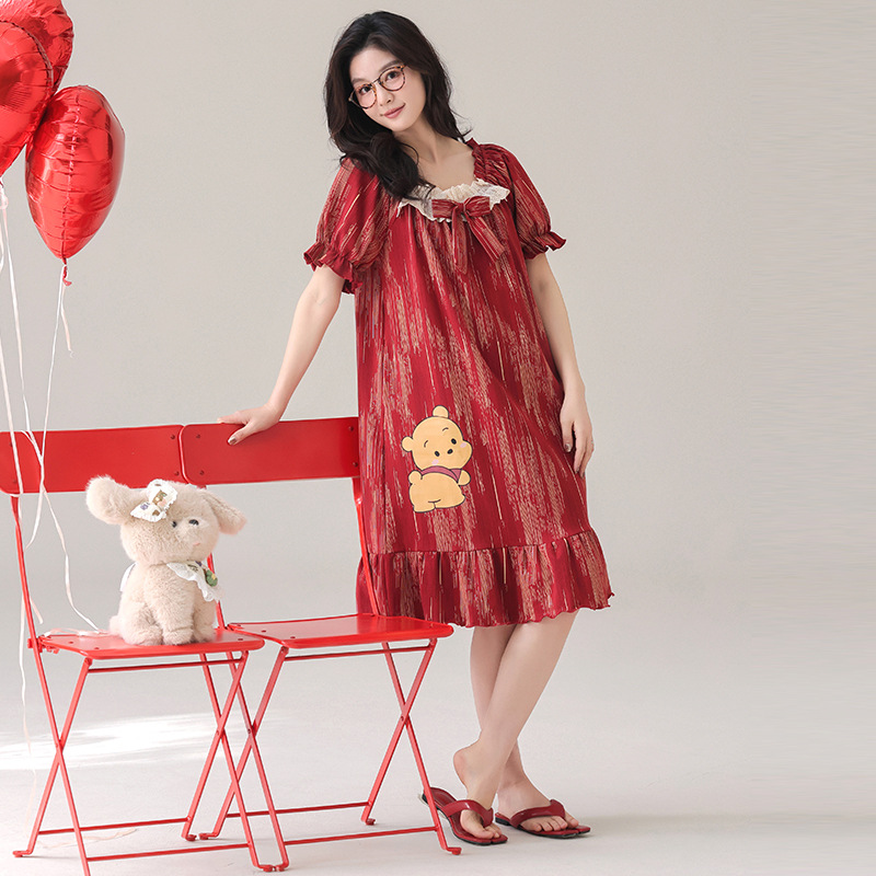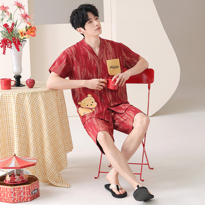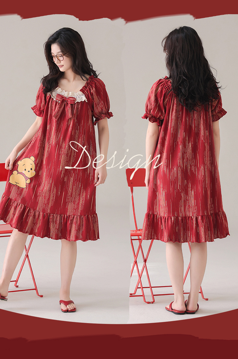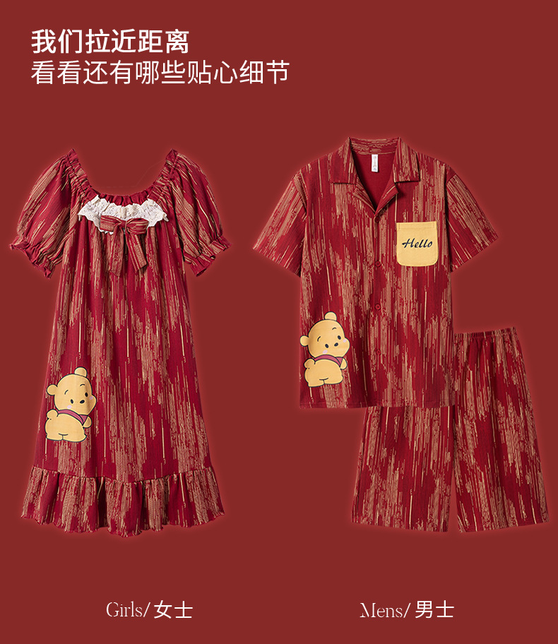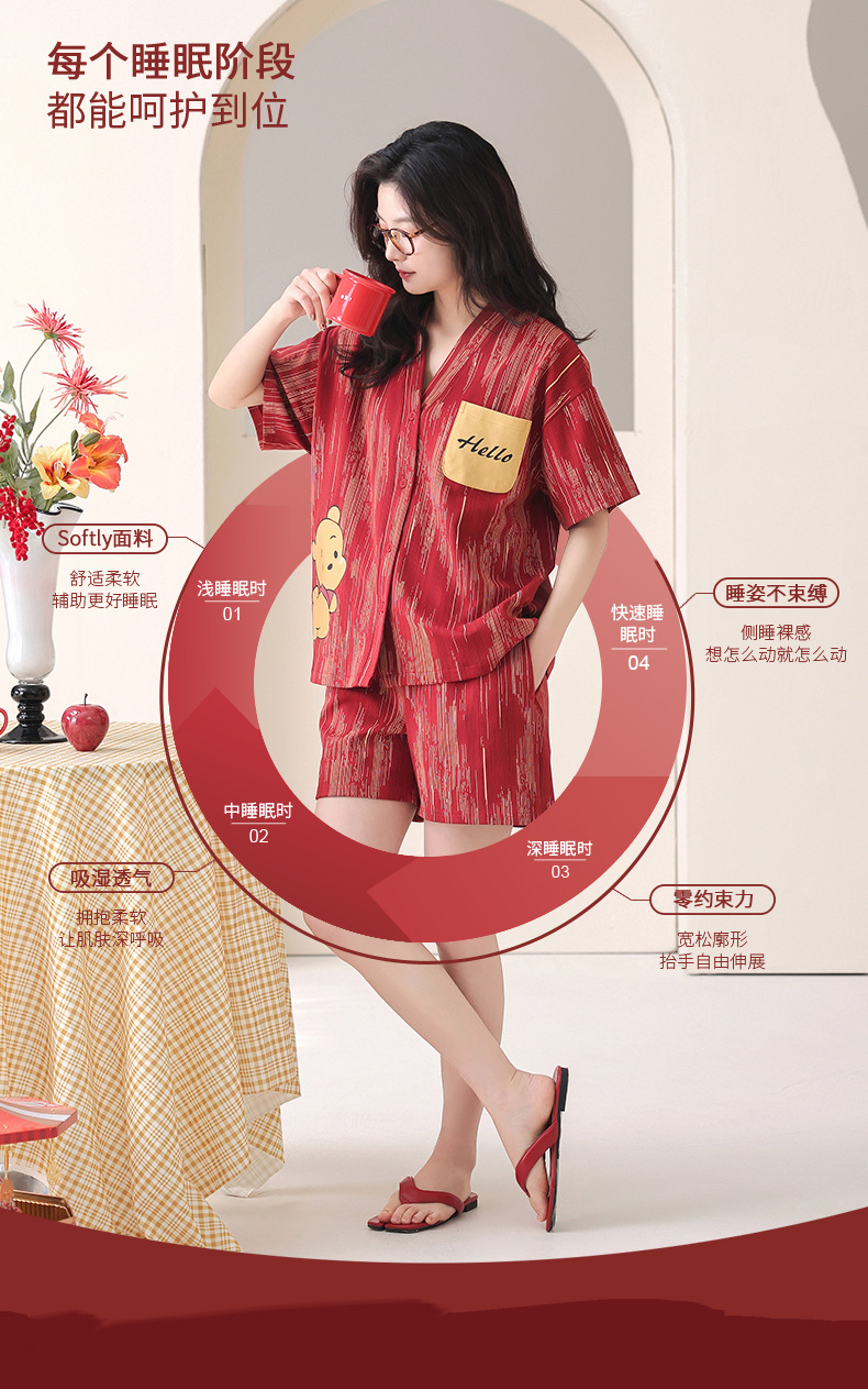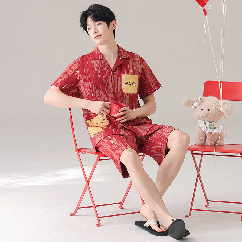 커플 잠옷 여름 코튼 반팔 웨딩 축제 년 레드 얇은 코튼 홈 의류 세트스토어 가기