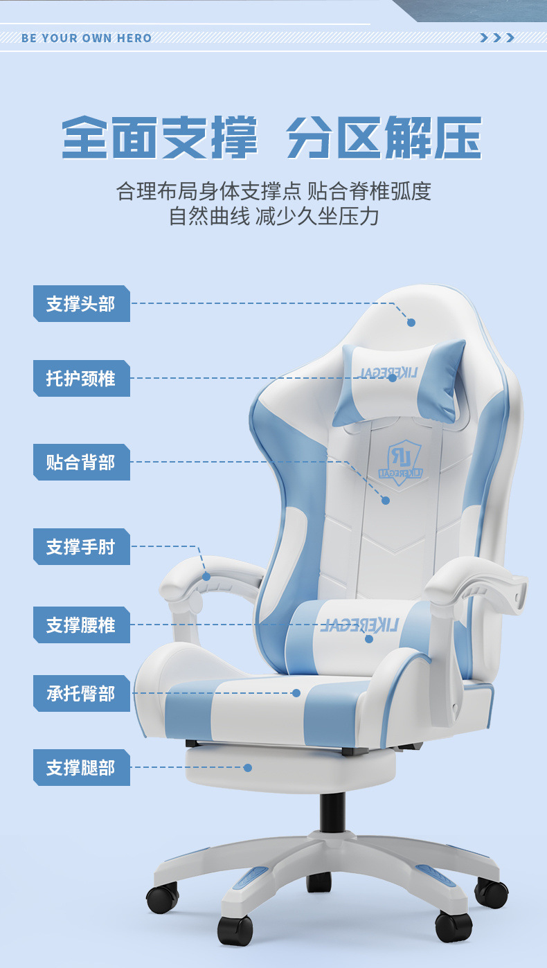 컴퓨터 의자 홈 오피스 의자 리프팅 게임 의자 편안한 앉아 인터넷 카페 학생들을위한 전자 스포츠 의자