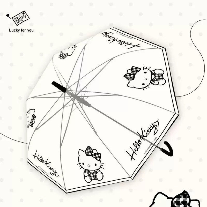 정품 산리오 kt 고양이 우산 여성의 귀여운 만화 투명 자동 긴 손잡이 우산 학생 학교 귀여운 재미 스트레이트 우산스토어 가기