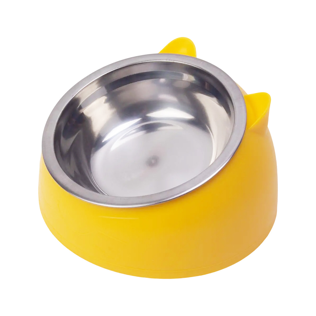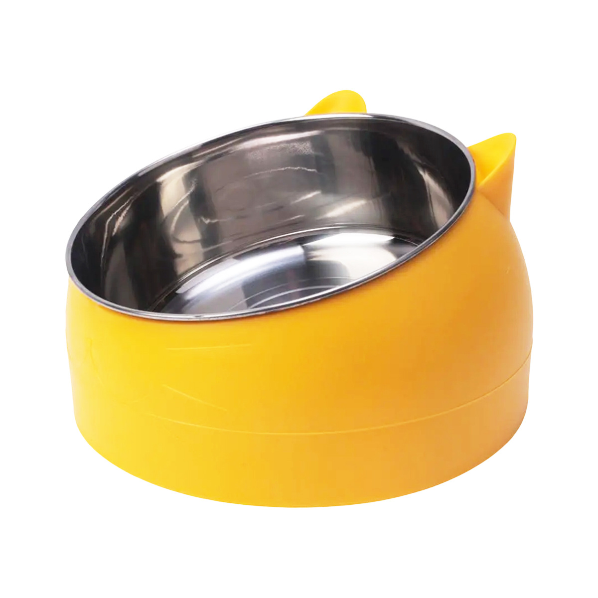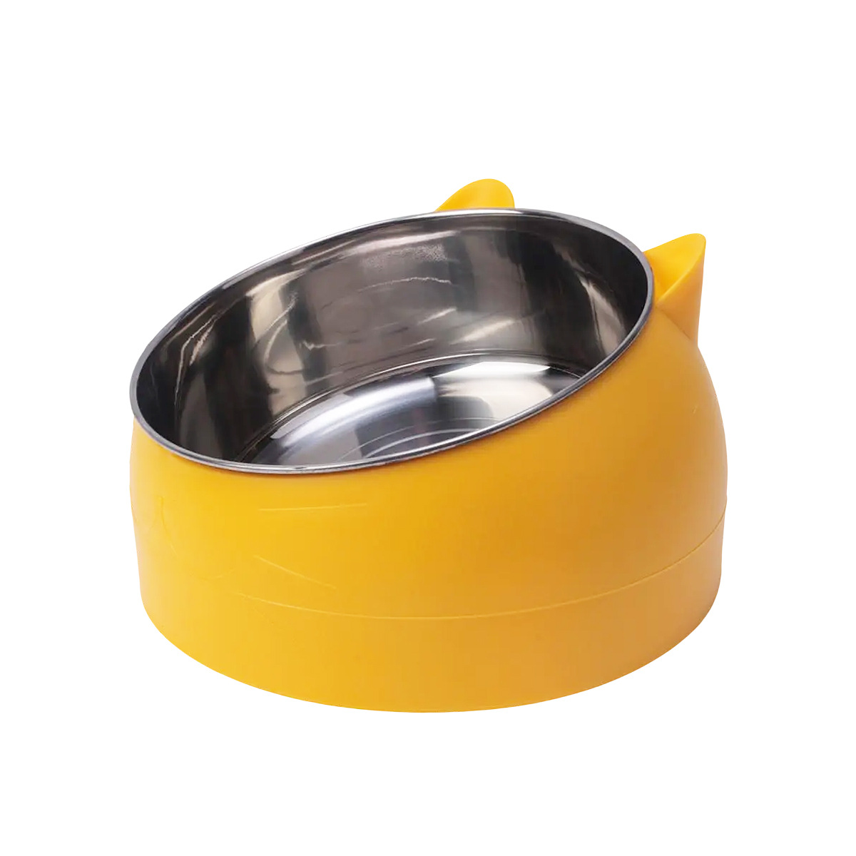 • 키가 큰 노란색 고양이 400ml 강철 그릇과 베이지색 천천히 먹이는 대야
