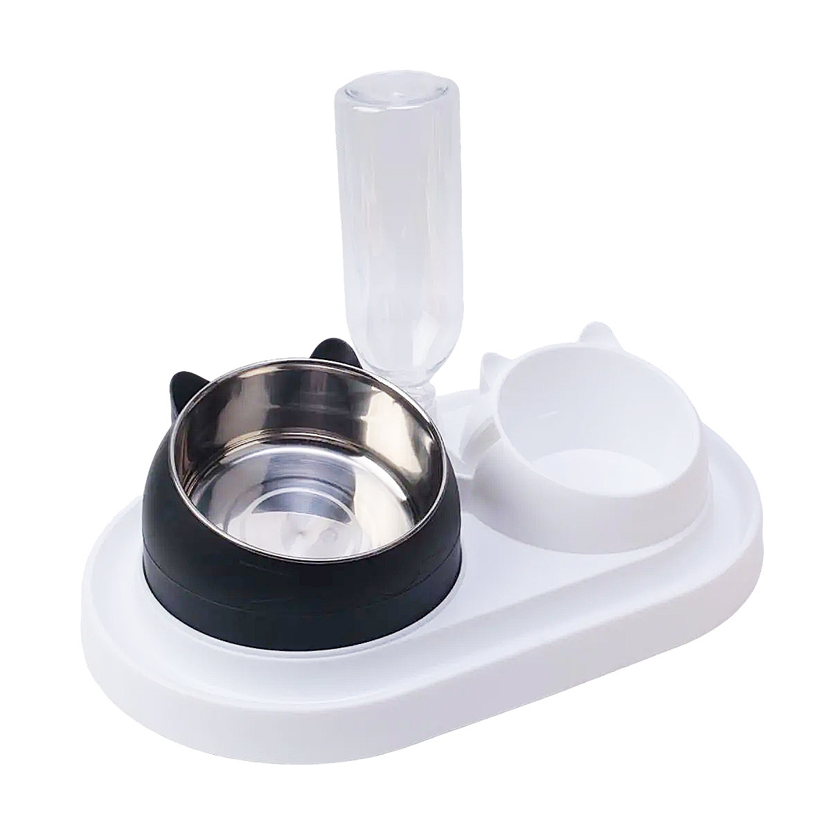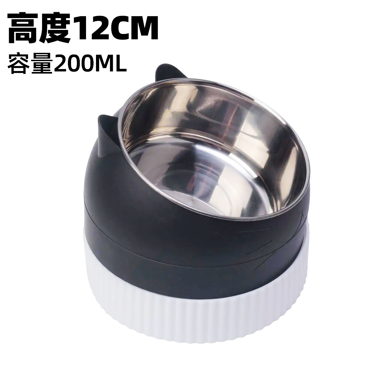 • 키가 큰 검은 고양이 200ml 강철 그릇과 흰색 천천히 먹이는 대야