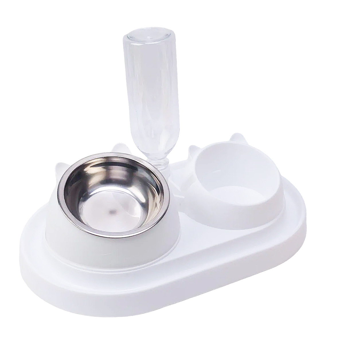 • 키가 큰 흰색 고양이 200ml 강철 그릇과 흰색 천천히 먹이는 대야