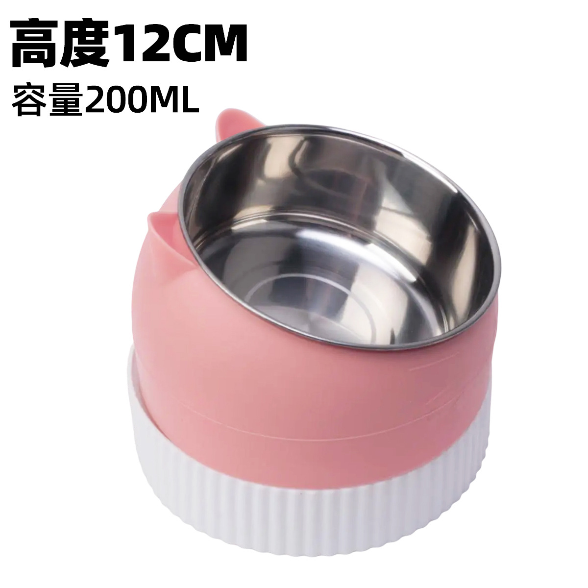 • 흰색 천천히 먹이는 대야가 있는 키가 큰 분홍색 고양이 200ml 강철 그릇