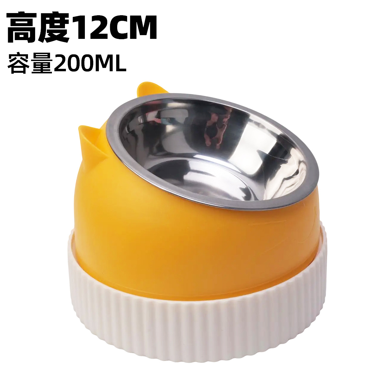 • 키가 큰 노란 고양이 200ml 강철 그릇과 베이지색 천천히 먹이는 대야