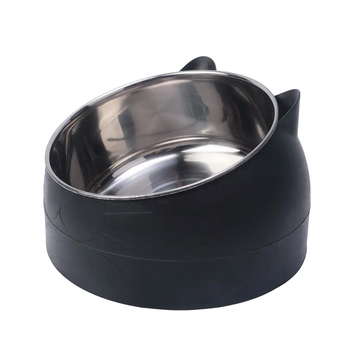• 키가 큰 검은 고양이 400ml 강철 그릇과 흰색 천천히 먹이는 분지