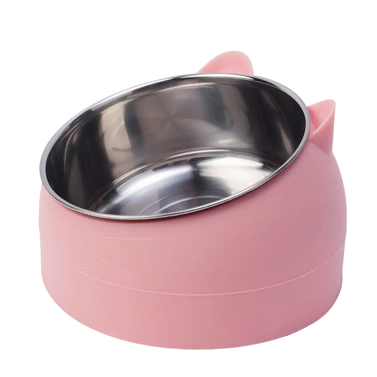 • 흰색 천천히 먹이는 대야가 있는 키가 큰 분홍색 고양이 400ml 강철 그릇