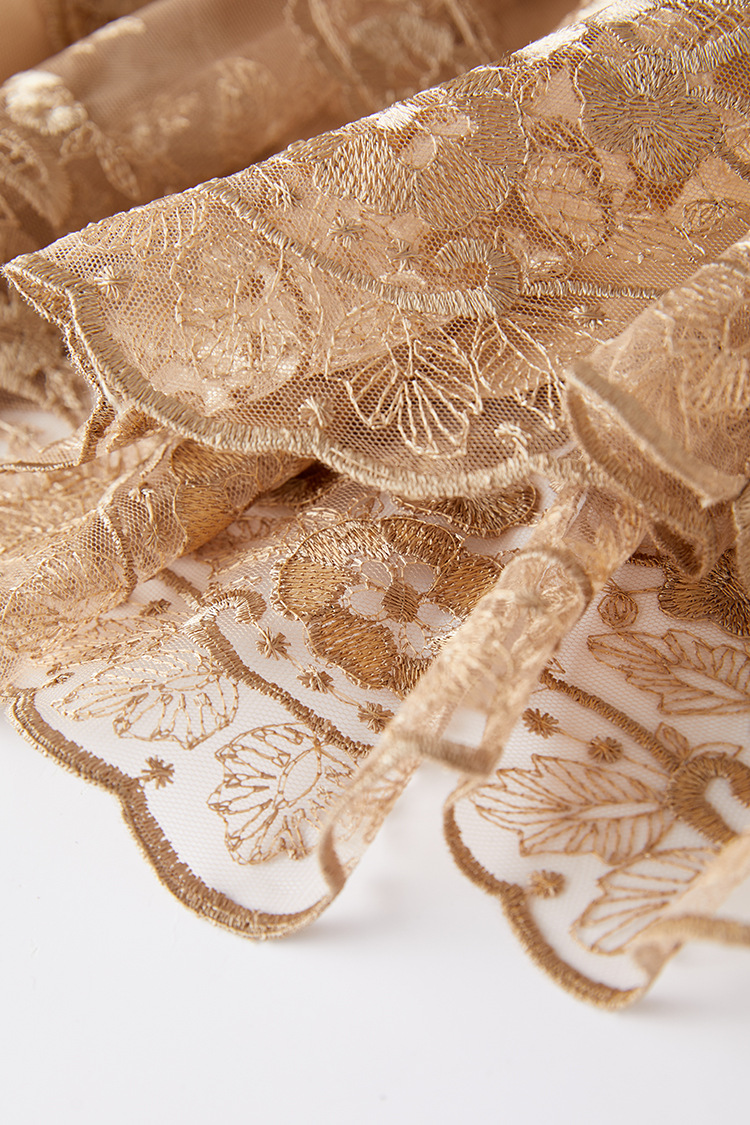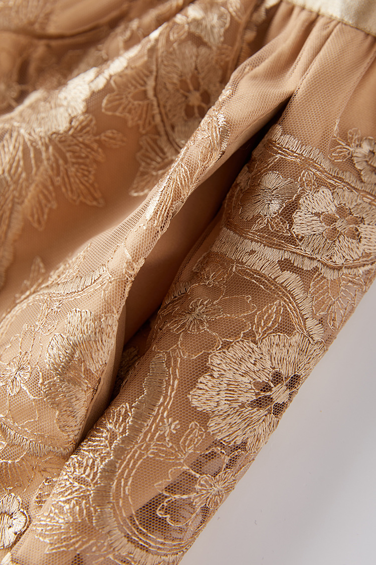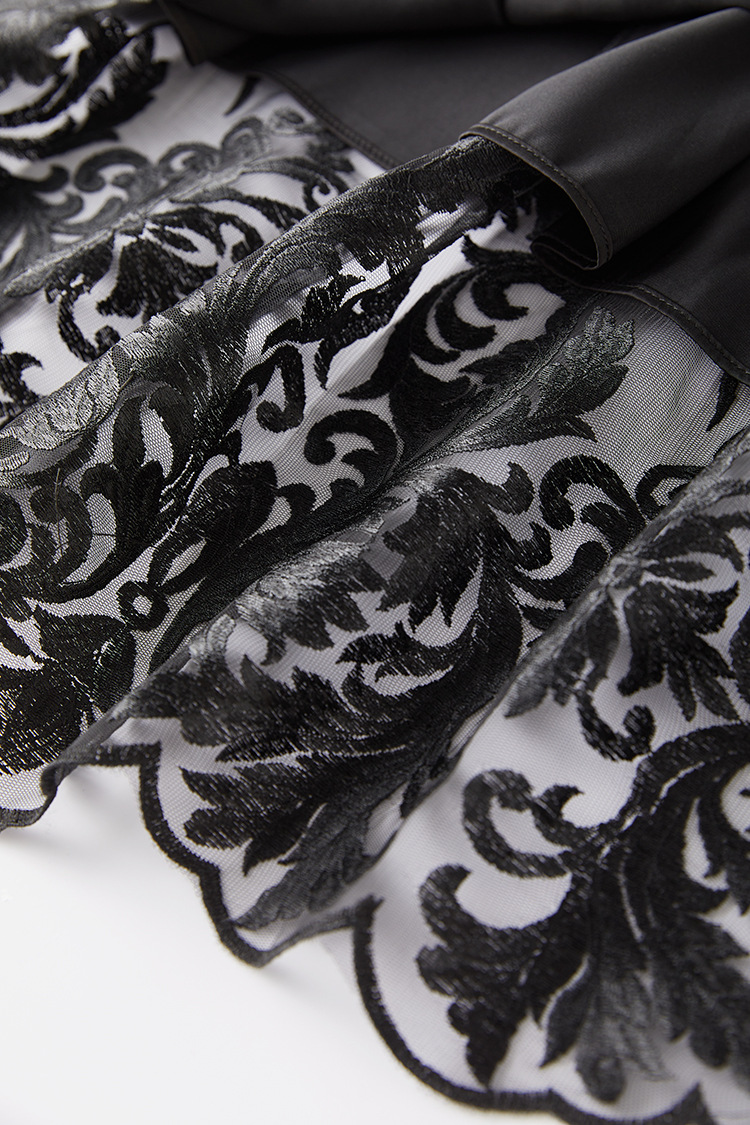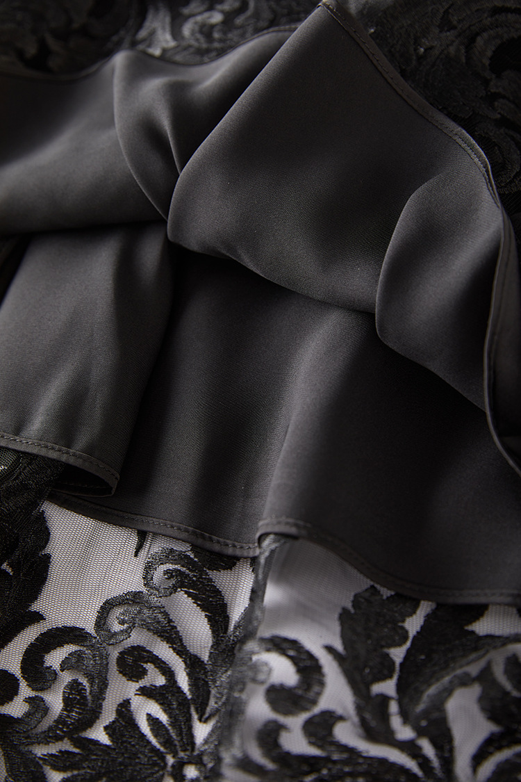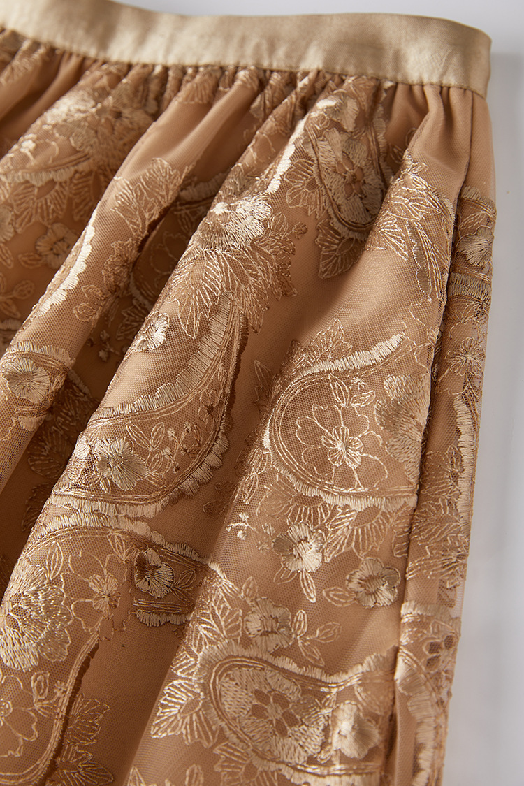 手感柔软,亦狠有筋骨感,能够支撑起整个裙身的造型