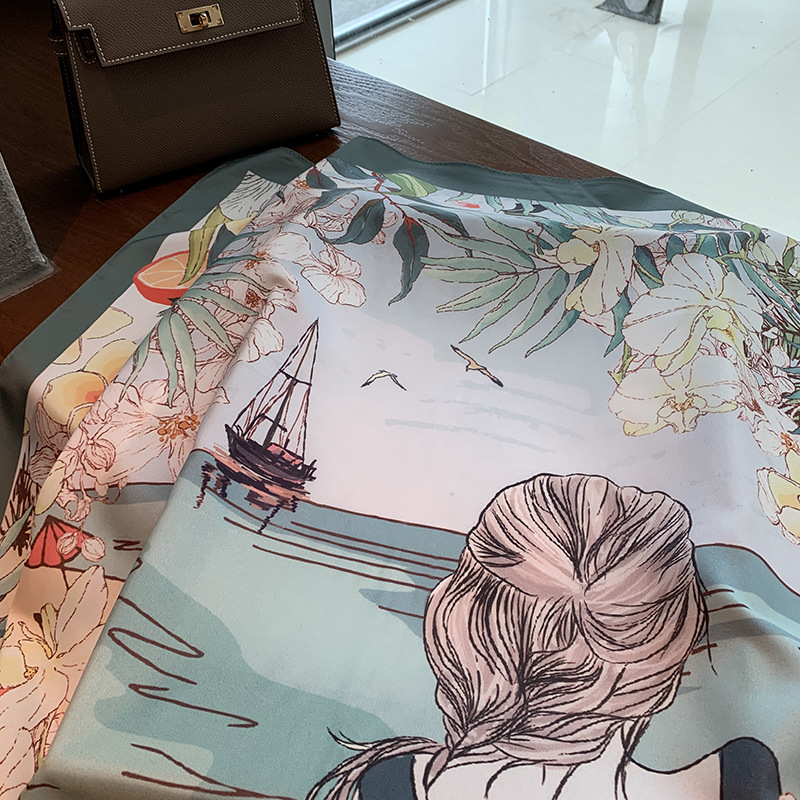 Guofeng 화려한 꽃 모방 향기로운 구름 원사 스카프 여성 틈새 90 스퀘어 스카프 장식 전문 스카프 공장 도매