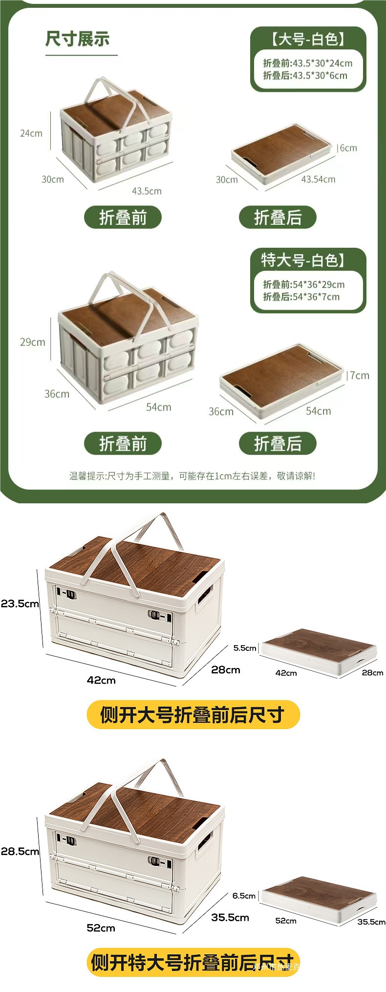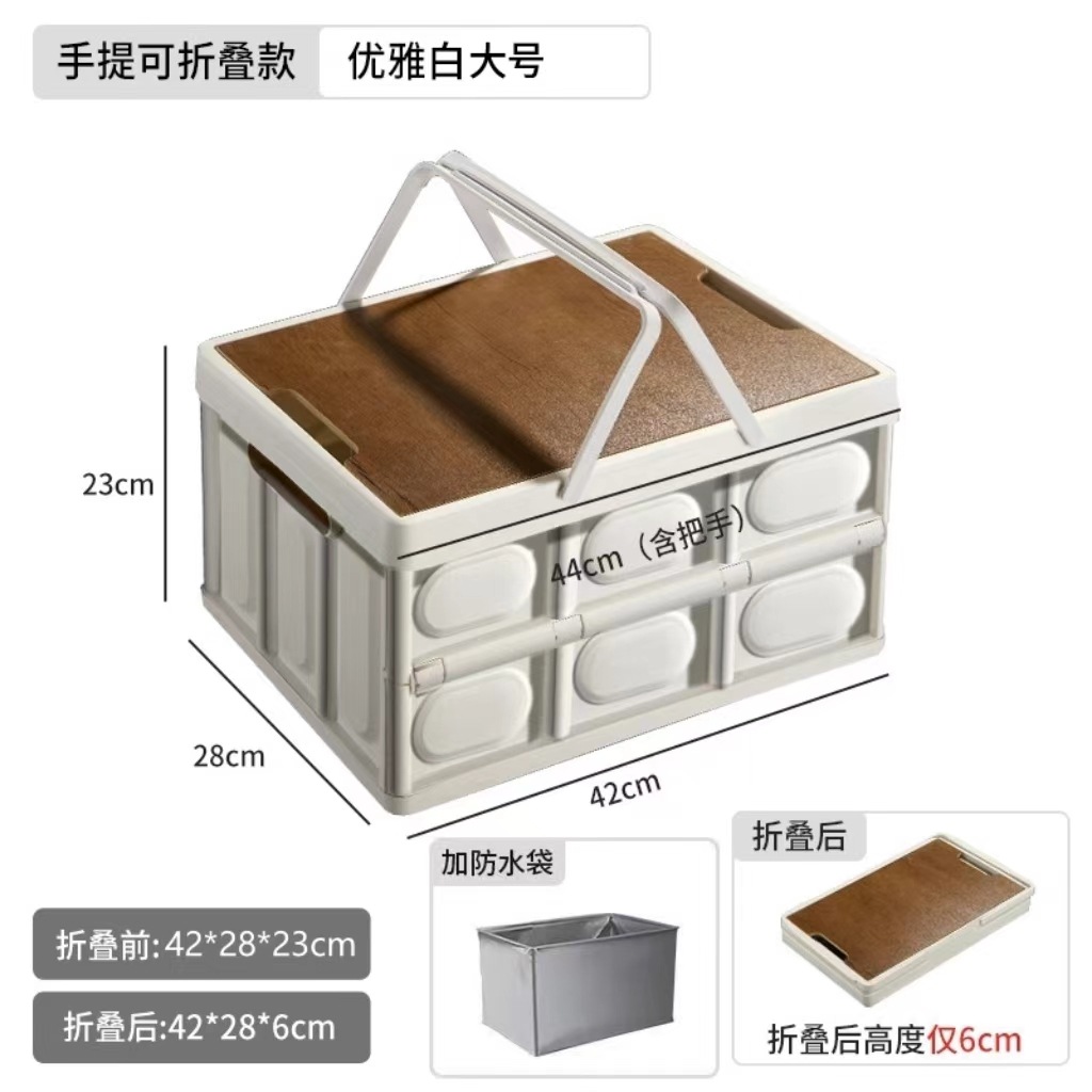 • 특대형 흰색 58L [휴대용 두꺼운 모델] + 나무 테이블 + 접이식 + 대형 수납