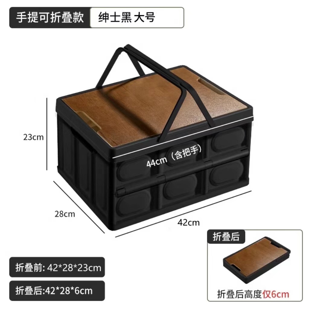 • 특대 블랙 58L [두꺼운 손잡이 모델] + 나무 테이블 + 접이식 + 대형 수납
