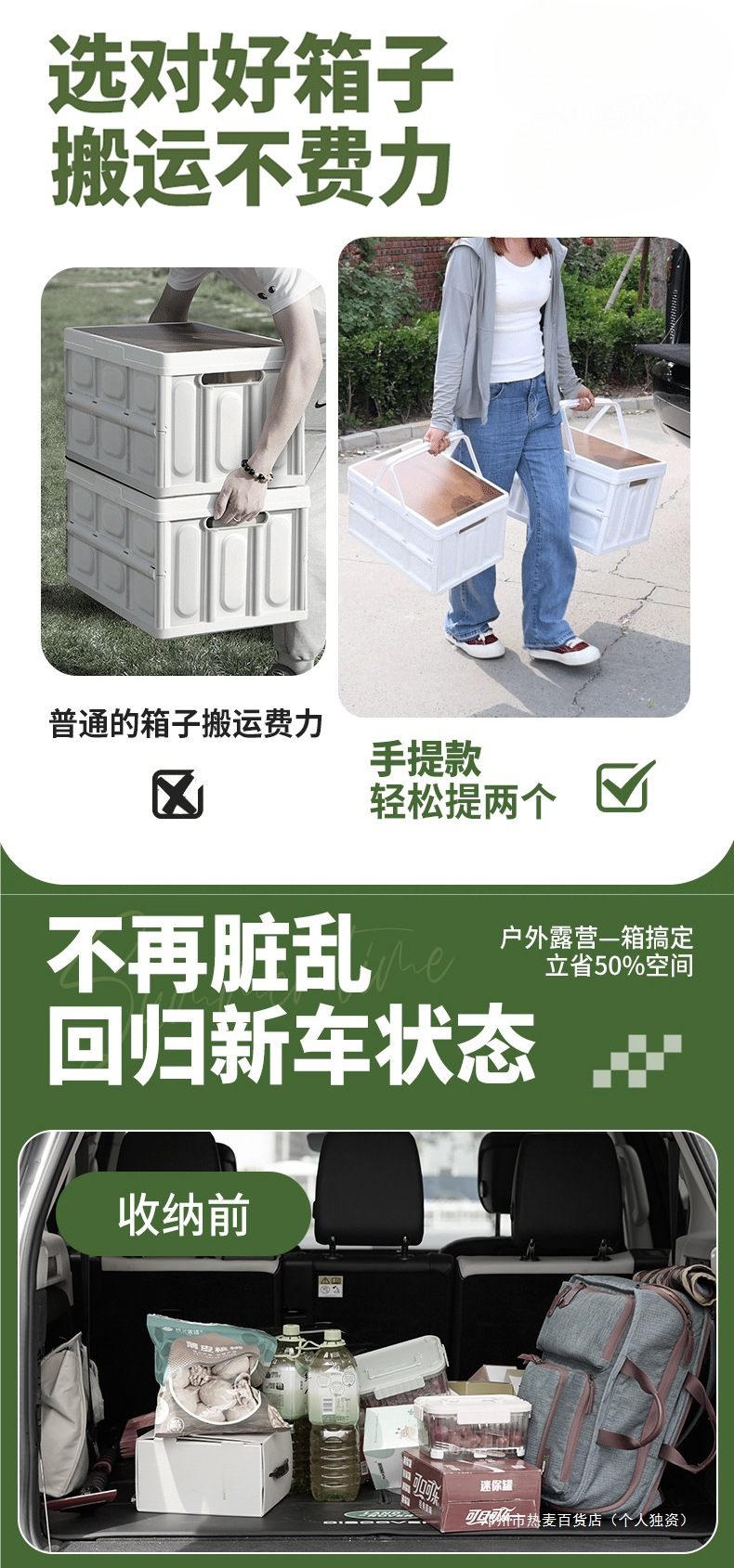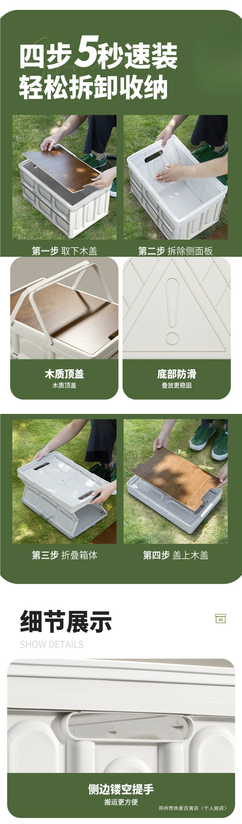 • 특대 그린 58L [두꺼운 손잡이 모델] + 방수 가방 + 나무 테이블 + 접이식 + 대형 수납 공간