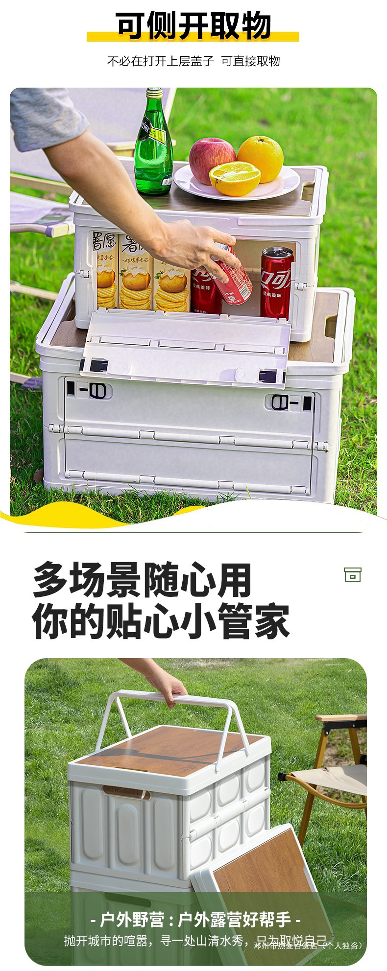 • 특대형 흰색 58L [측면 개방형 두꺼운 손잡이 모델] + 방수 가방 + 나무 테이블 + 접이식 + 대형 수납 공간