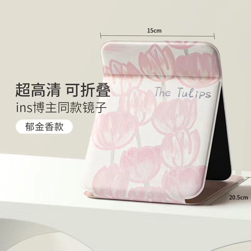 튤립 메이크업 거울 접이식 거울 휴대 학생 기숙사 휴대용 사무실 귀여운 데스크탑 드레싱 거울스토어 가기