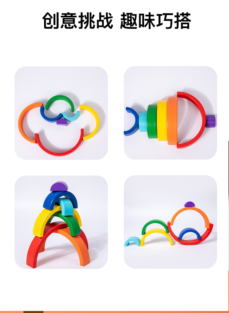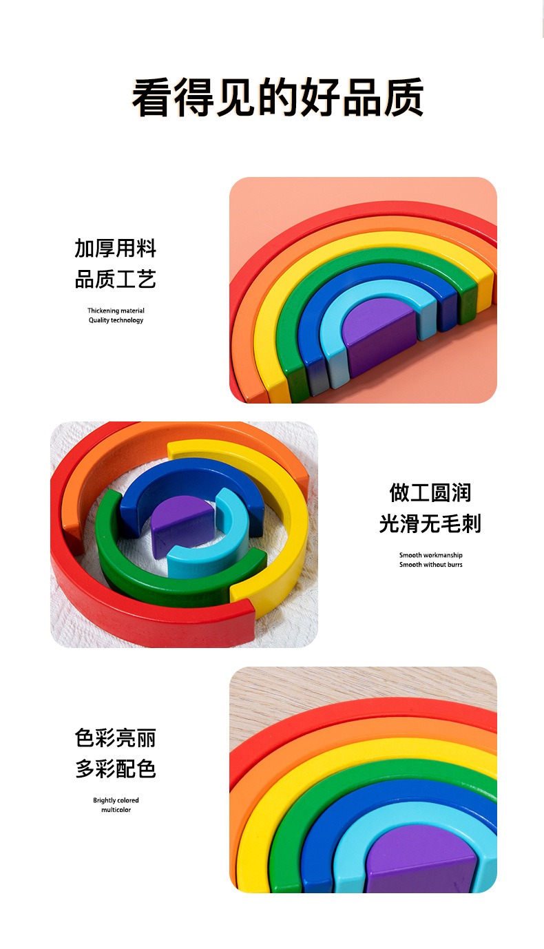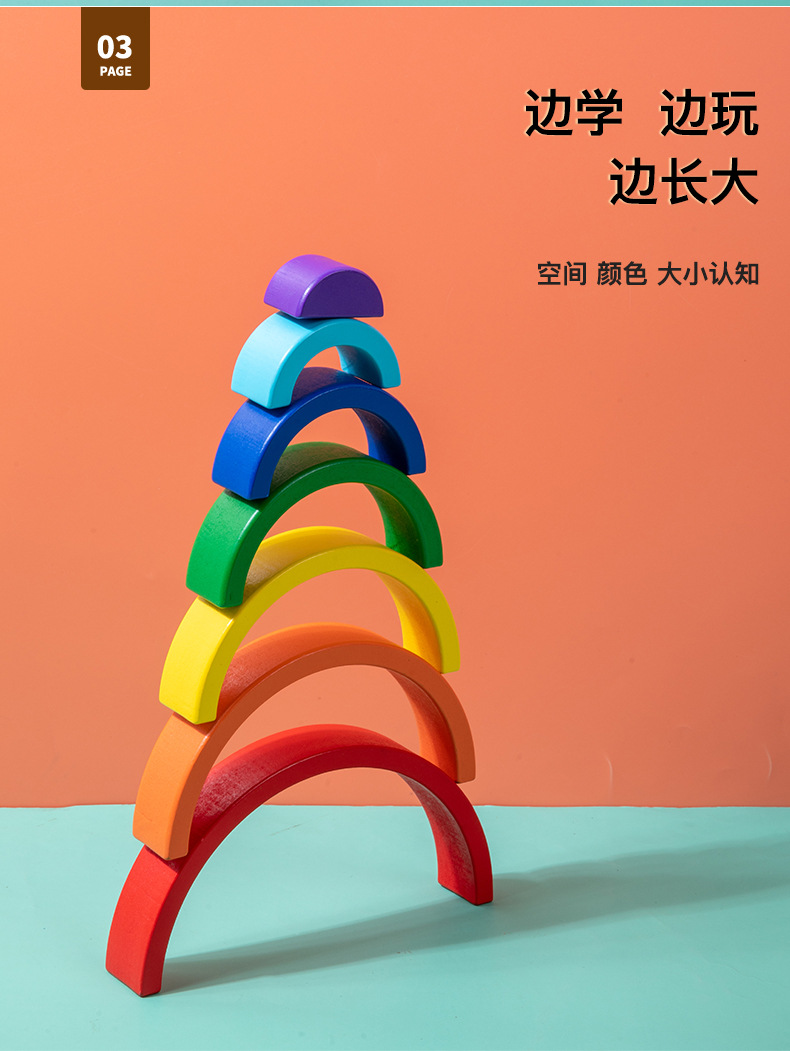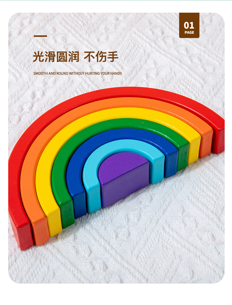 나무 어린이 교육 빌딩 블록 장난감 무지개 7 색 아치형 다리 모양의 반원형 조기 교육 지능 개발 Jenga 장난감