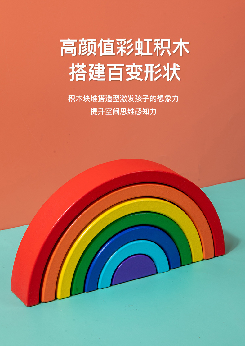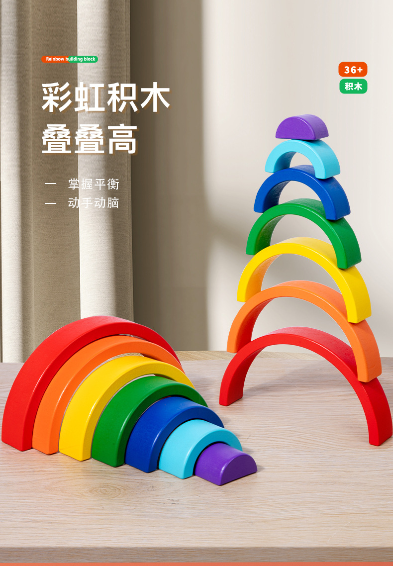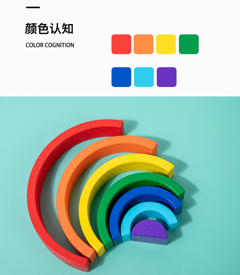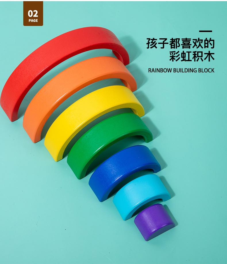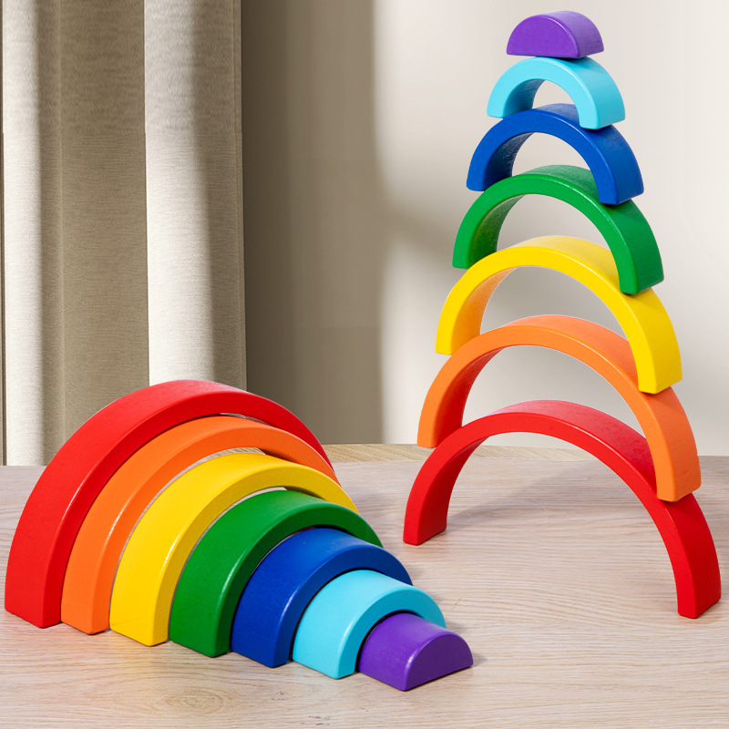 나무 어린이 교육 빌딩 블록 장난감 무지개 7 색 아치형 다리 모양의 반원형 조기 교육 지능 개발 Jenga 장난감스토어 가기