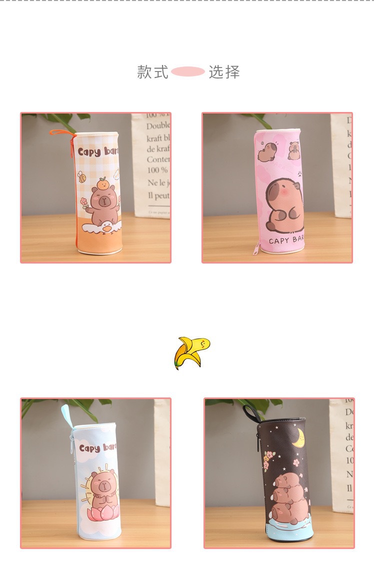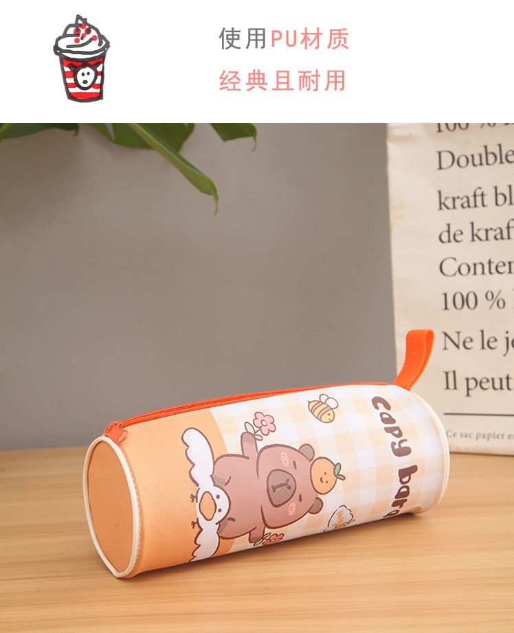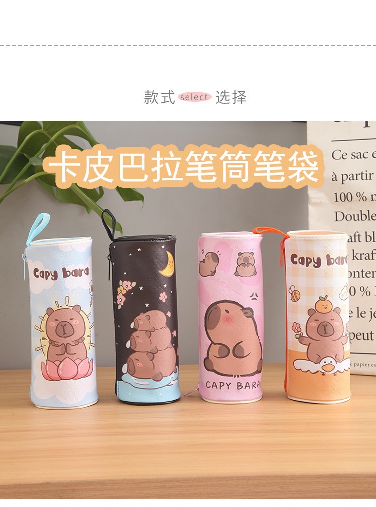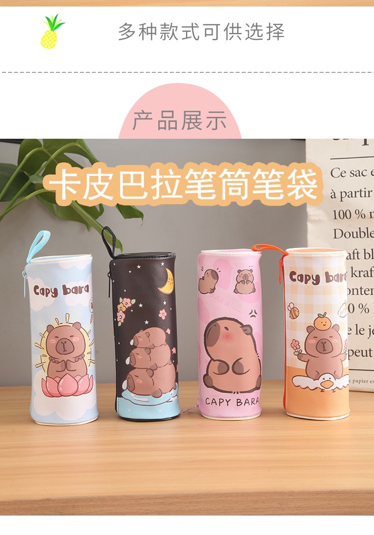 Kabi Bala 실린더 연필 케이스 capybara 학생 대용량 문구 가방 어린이 학교 용품 문구 상자