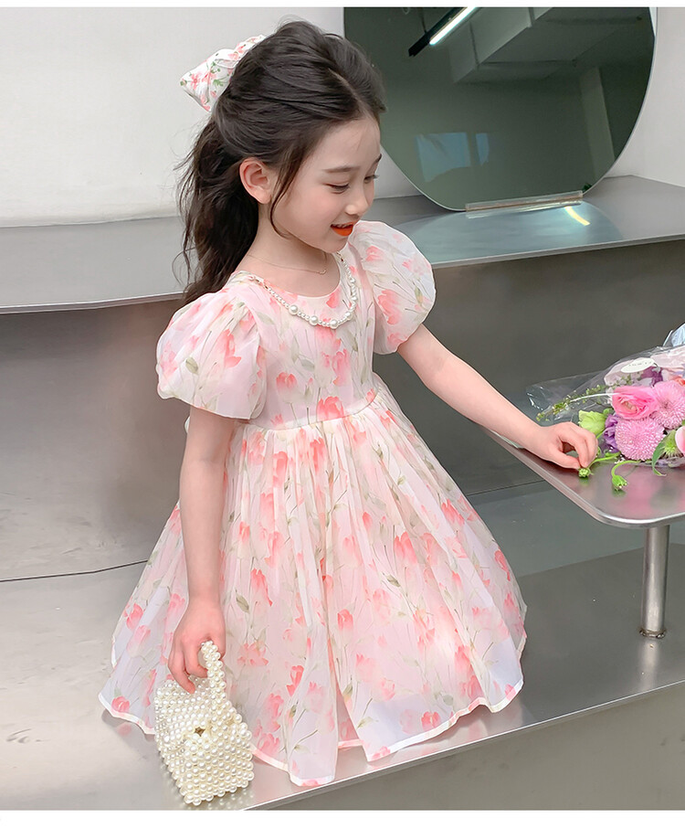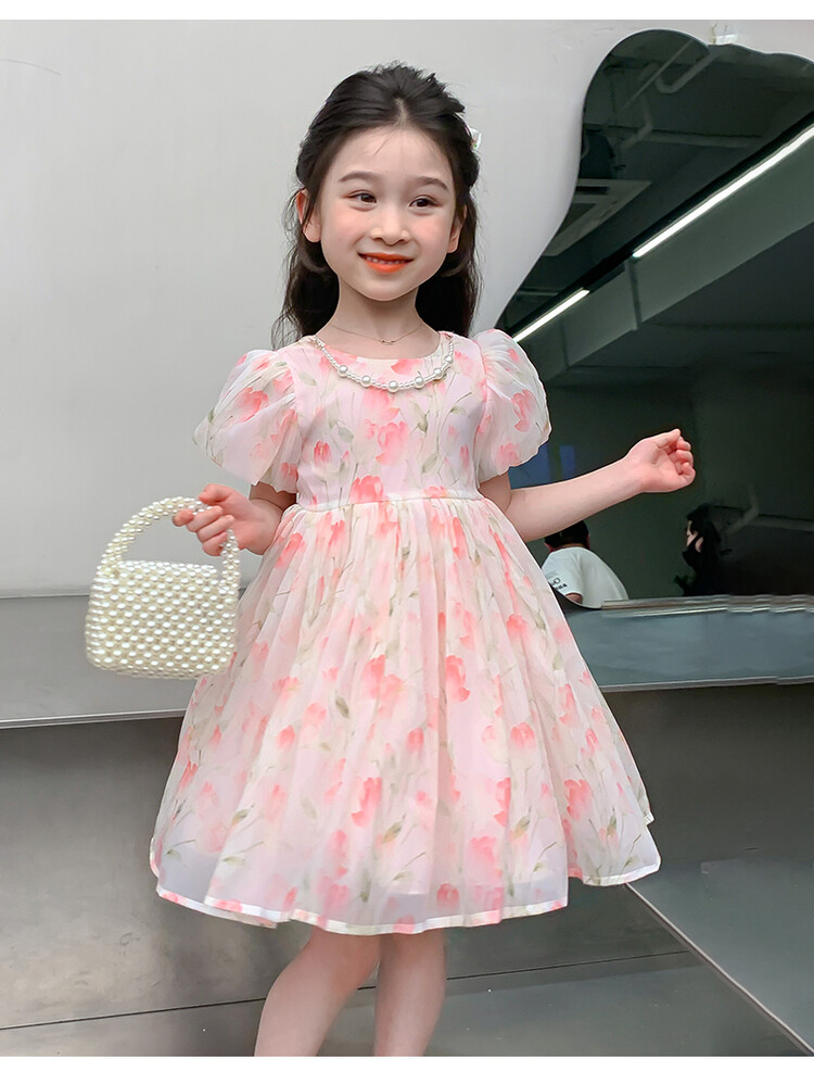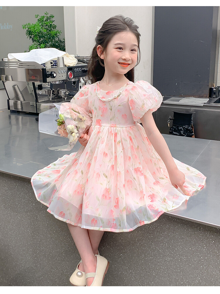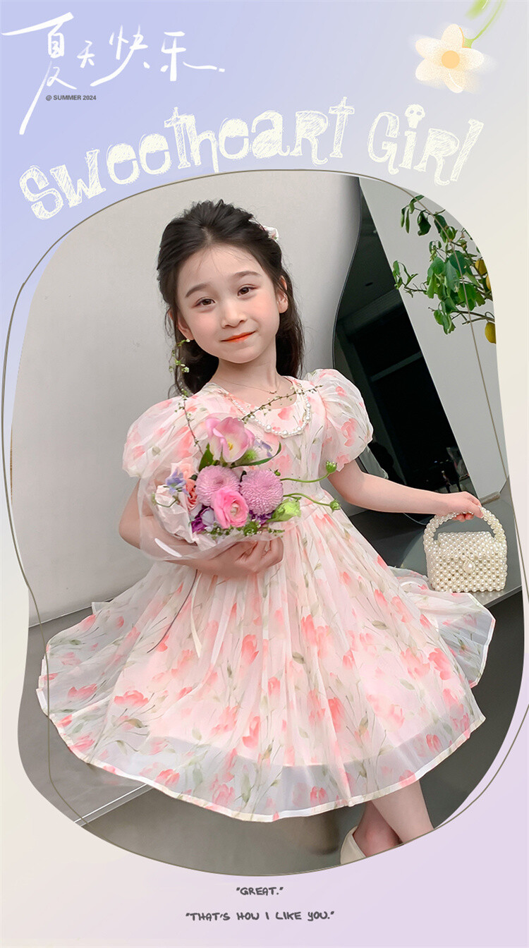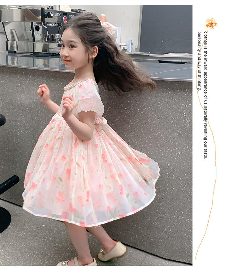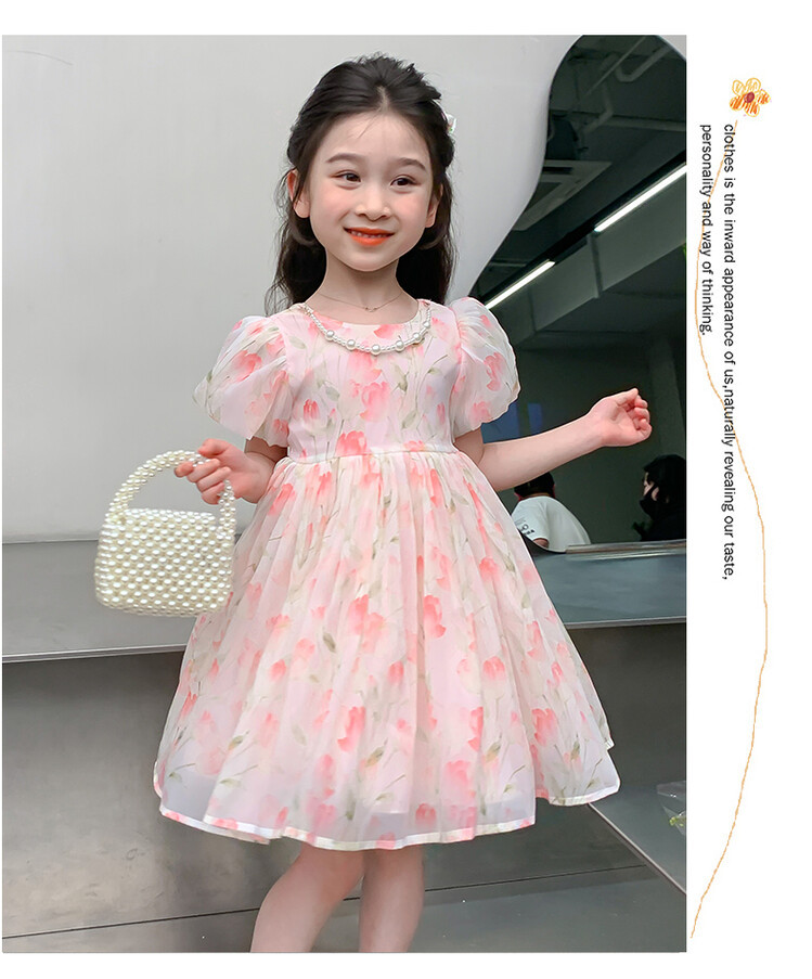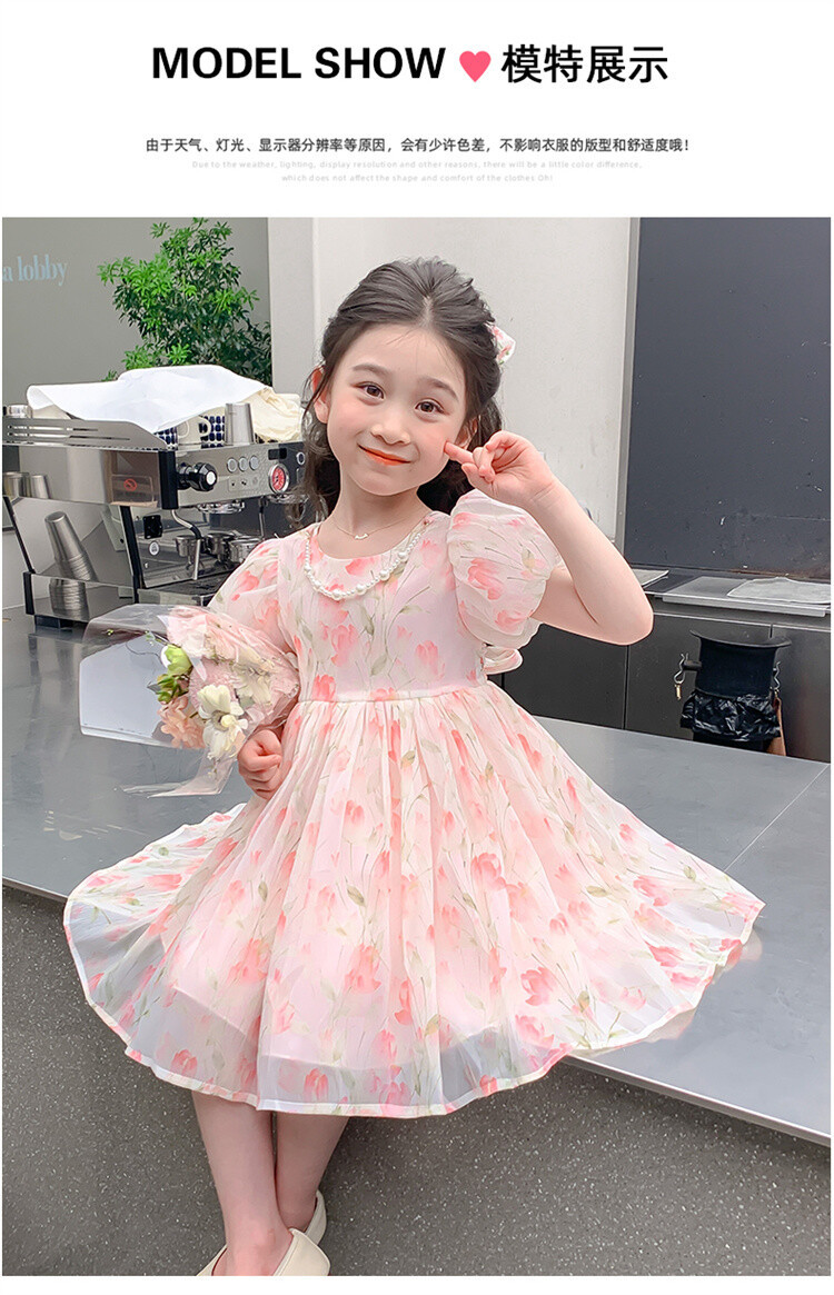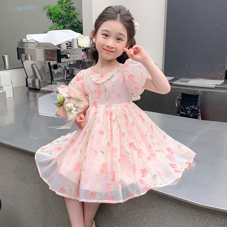 여자 드레스 여름 2025 새로운 어린이 유행 아기 소녀 얇은 여름 드레스 퍼프 슬리브 공주 드레스스토어 가기