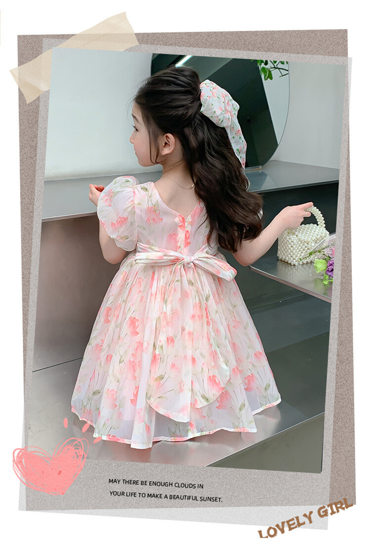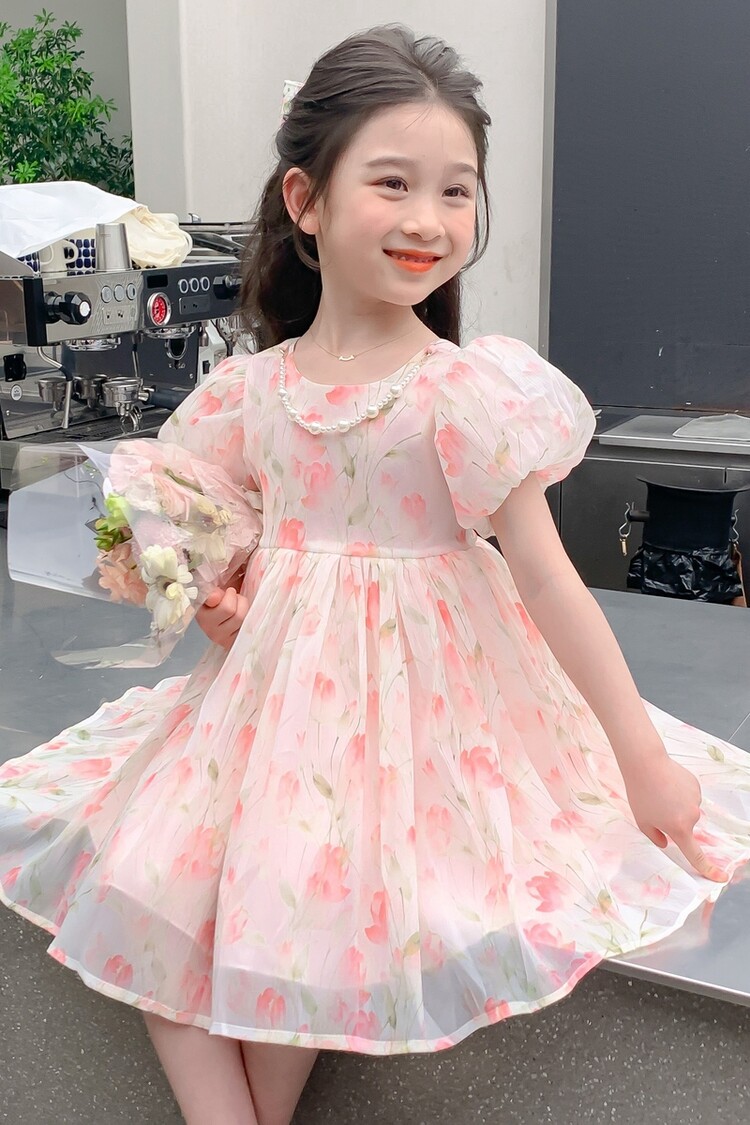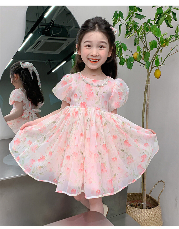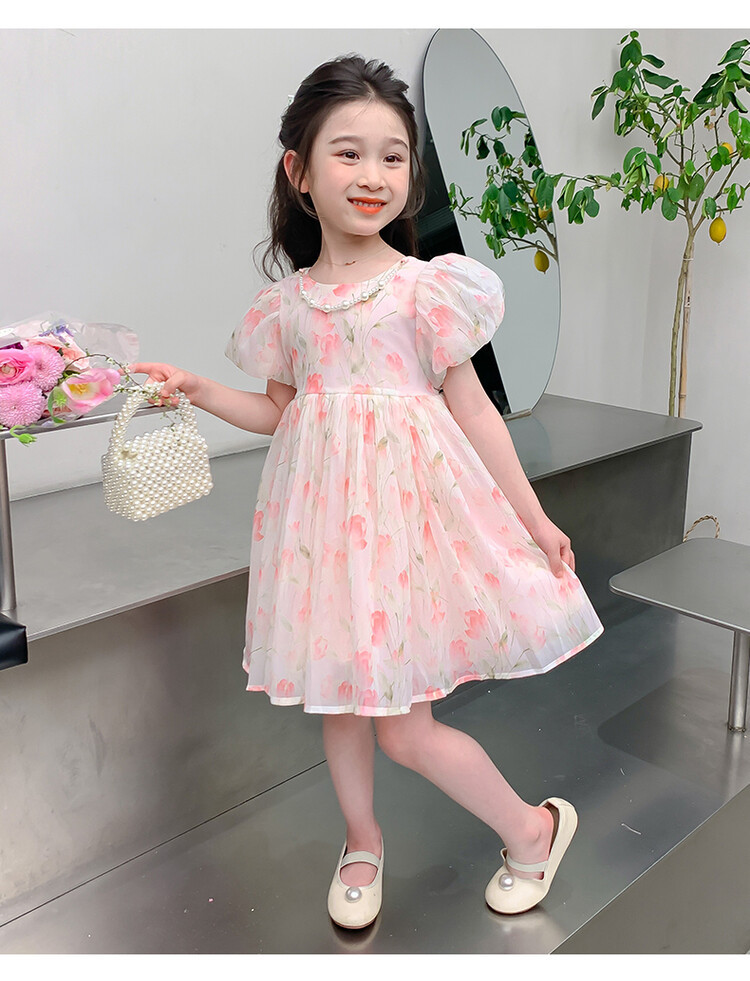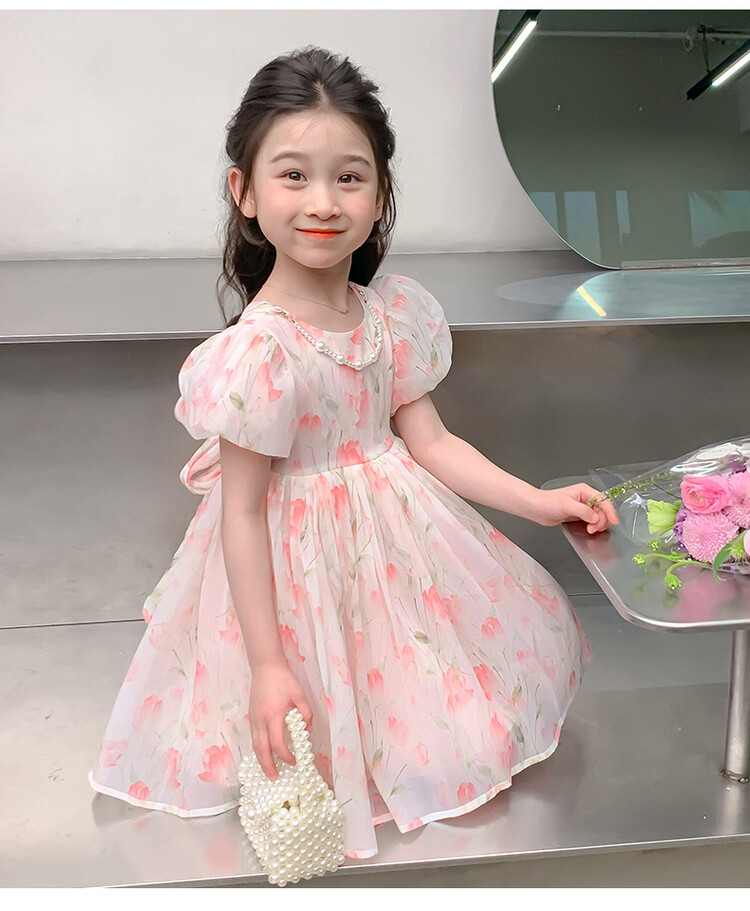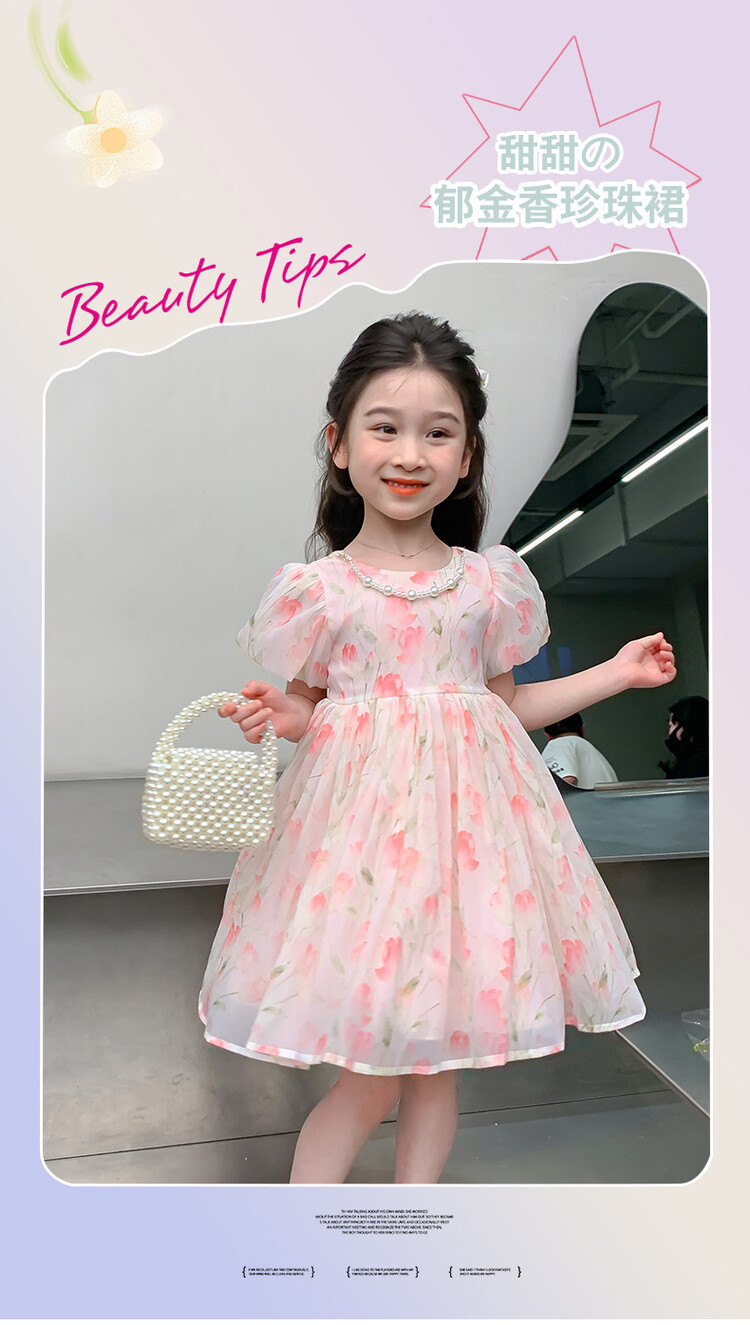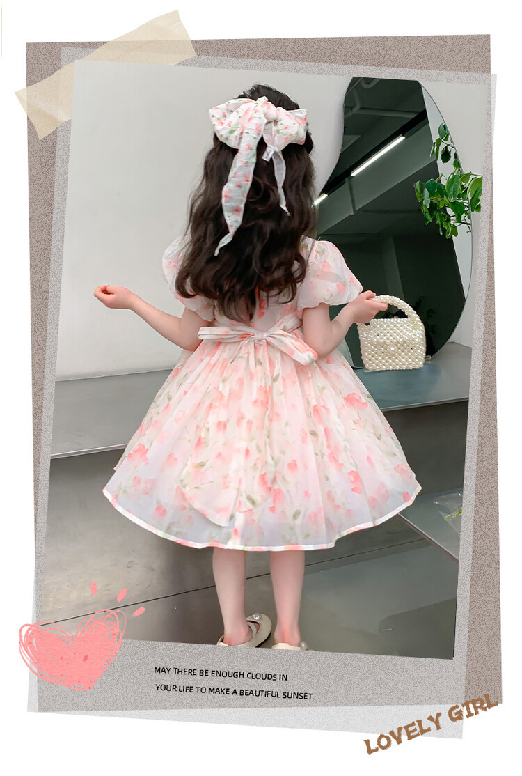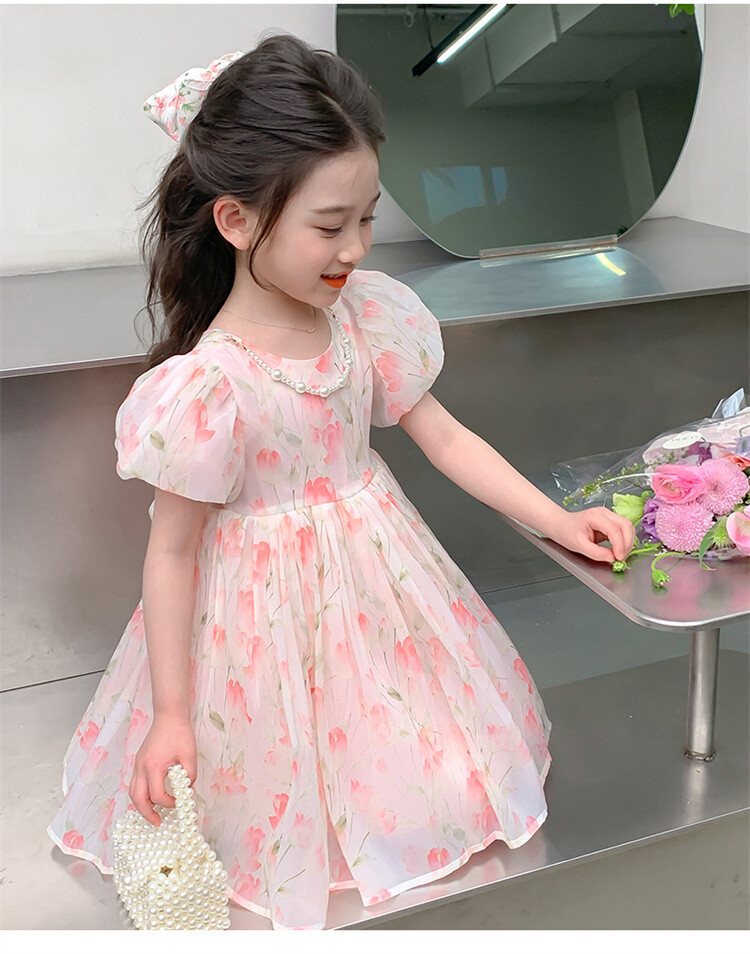 여자 드레스 여름 2025 새로운 어린이 유행 아기 소녀 얇은 여름 드레스 퍼프 슬리브 공주 드레스스토어 가기