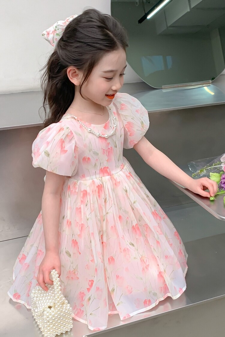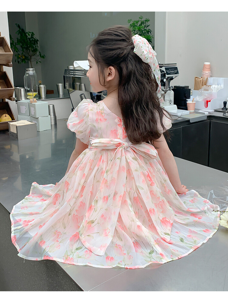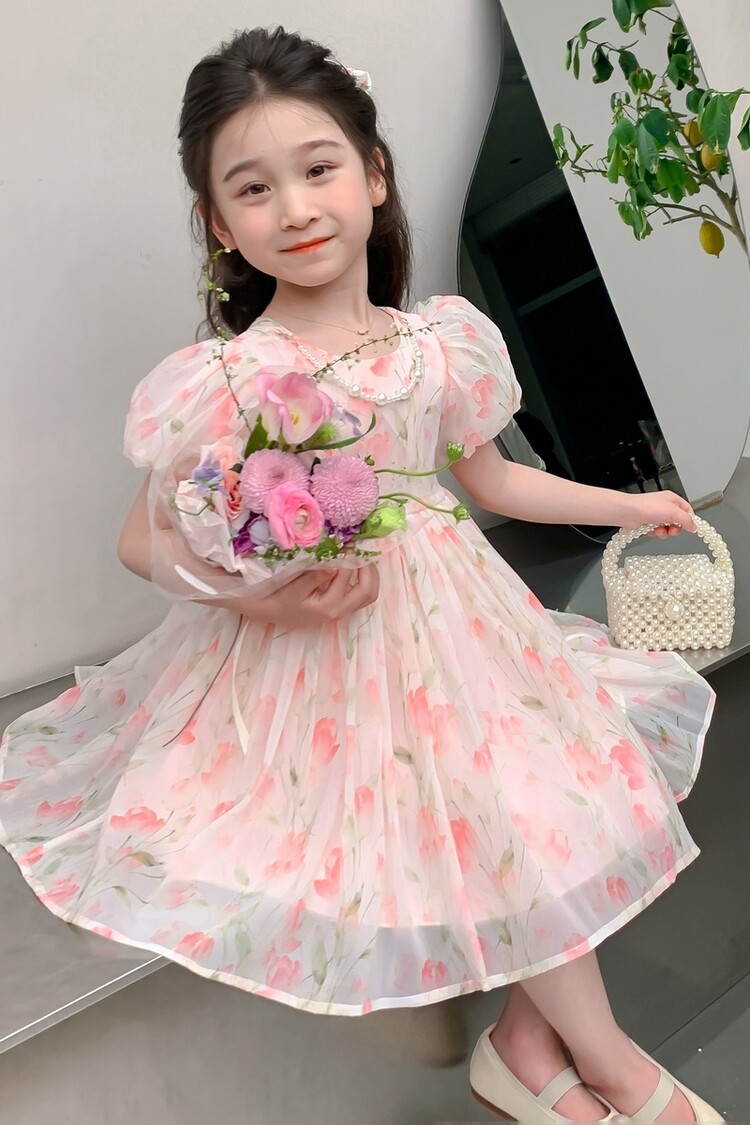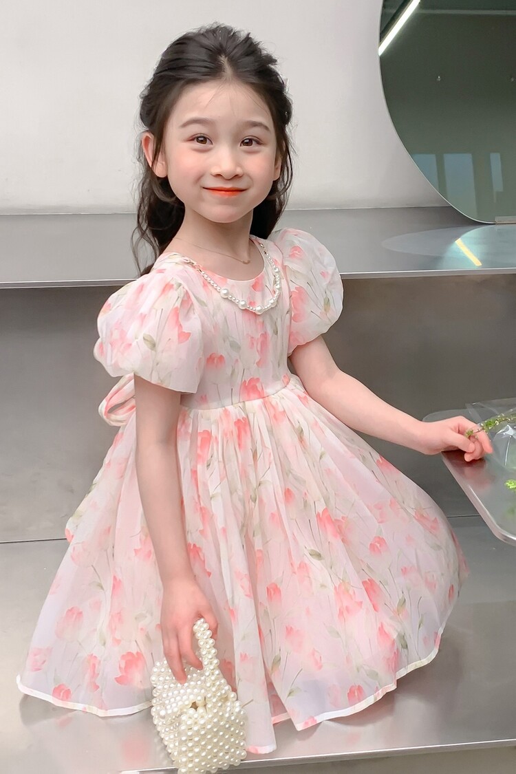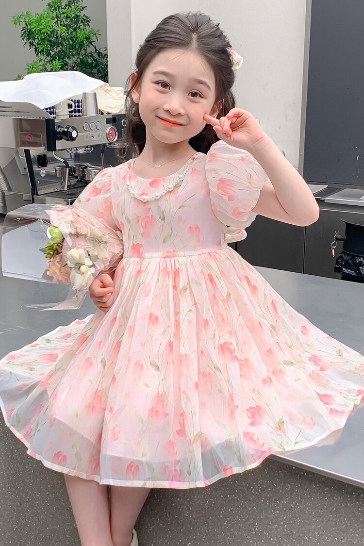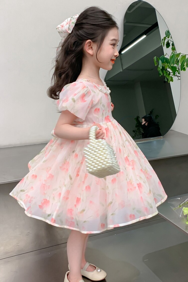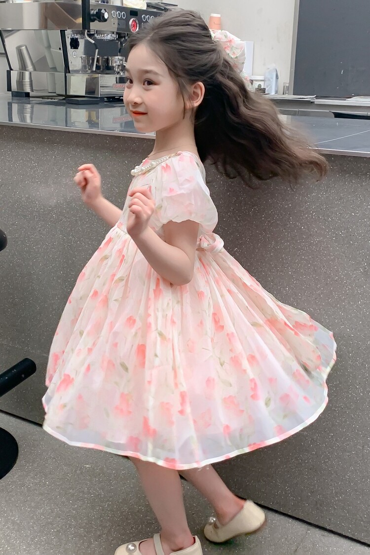 여자 드레스 여름 2025 새로운 어린이 유행 아기 소녀 얇은 여름 드레스 퍼프 슬리브 공주 드레스스토어 가기