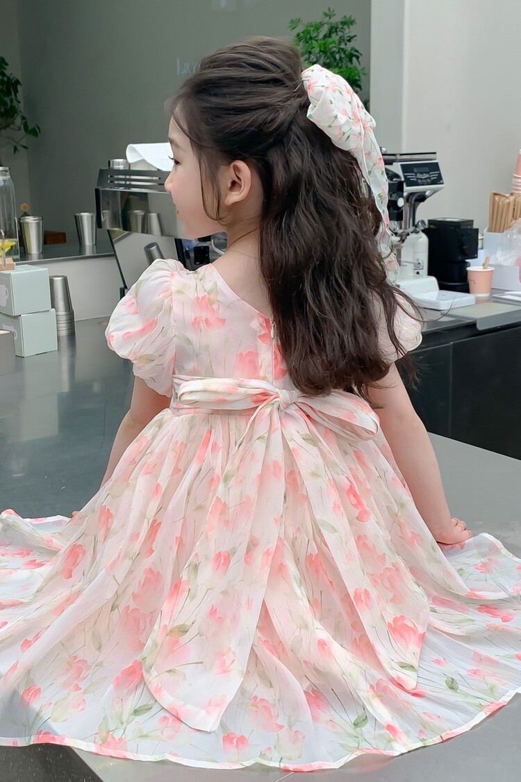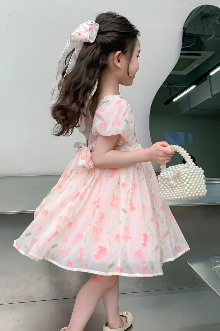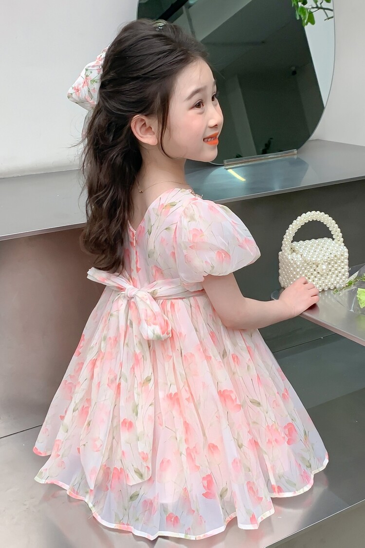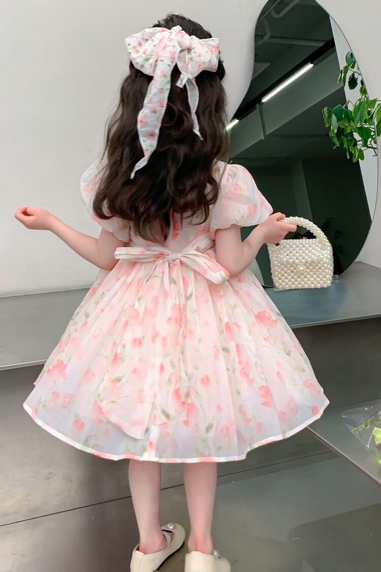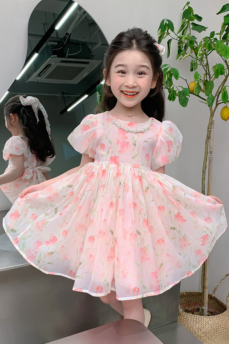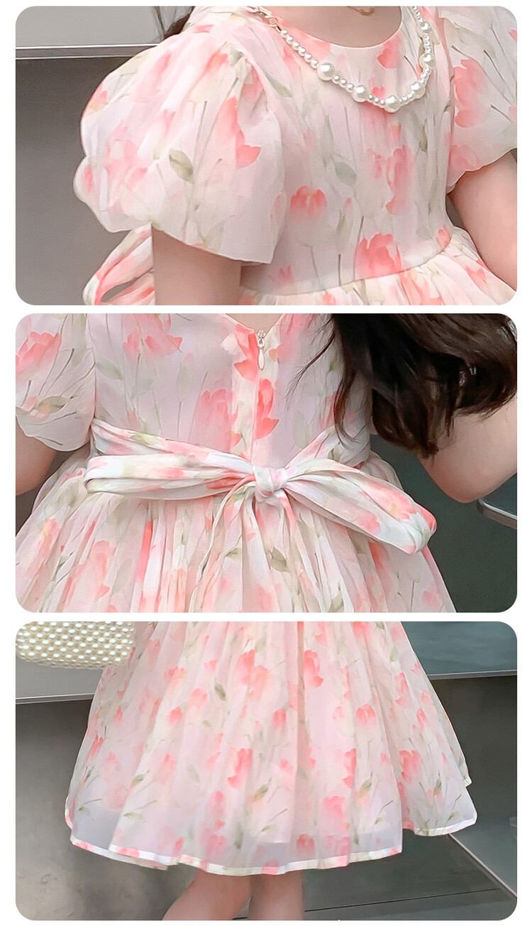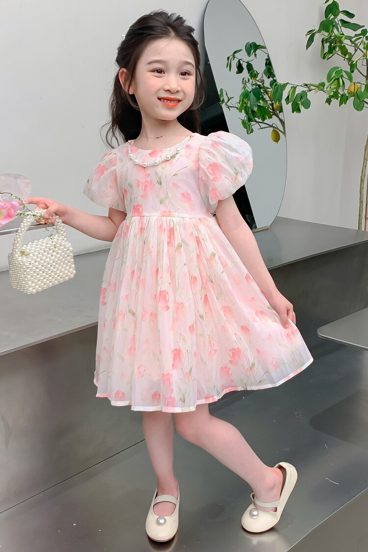 여자 드레스 여름 2025 새로운 어린이 유행 아기 소녀 얇은 여름 드레스 퍼프 슬리브 공주 드레스스토어 가기