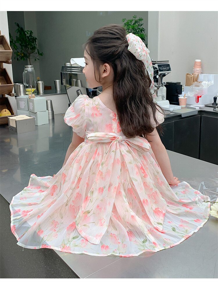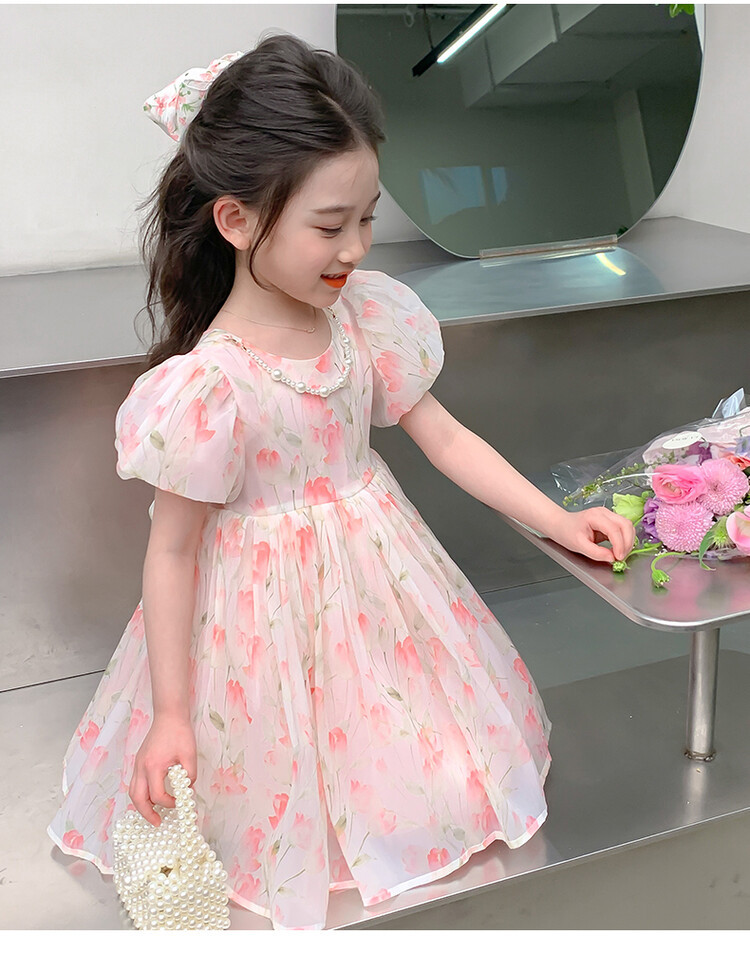 여자 드레스 여름 2025 새로운 어린이 유행 아기 소녀 얇은 여름 드레스 퍼프 슬리브 공주 드레스