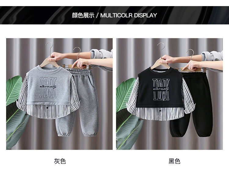 7810 소년 봄 착용 세트 2025 새로운 스타일 아동복 캐주얼 땀 더피 잘 생긴 아기 유행 투피스 세트스토어 가기