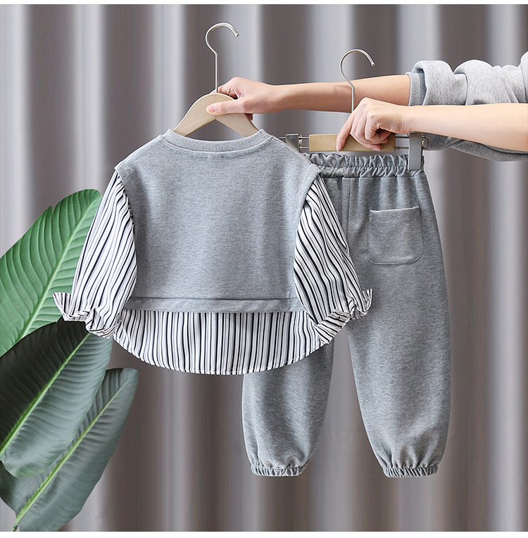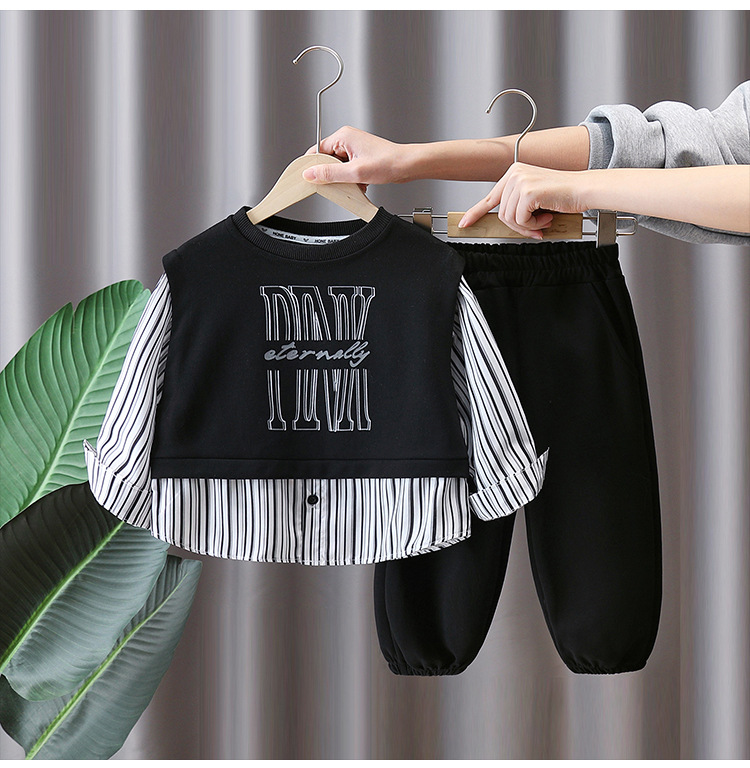 7810 소년 봄 착용 세트 2025 새로운 스타일 아동복 캐주얼 땀 더피 잘 생긴 아기 유행 투피스 세트