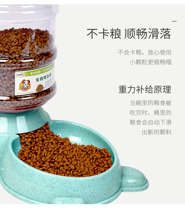 喂食器产品三大亮点:第一亮点上盖可拆随身补给,喂食器打开上顶部可添加食物方便快捷。第二亮点3.8L喂食大容量,够小型犬/猫吃7-10天,够大型犬吃1-3天。第三亮点重力补给方式,采用重力补给,再也不用宠物没有食物了。