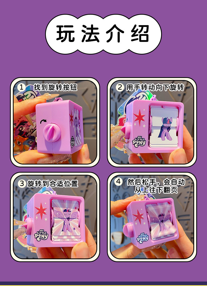정품 포니 폴리 압축 페이지 플립 머신 키 체인 Ziyue 재미있는 창조적 인 작은 장난감 가방 펜던트 키 체인스토어 가기