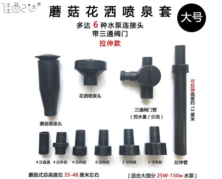 • 25W 워터 펌프 + 스트레치 분수 파이프 슬리브 대형 - 높이 43- 56cm