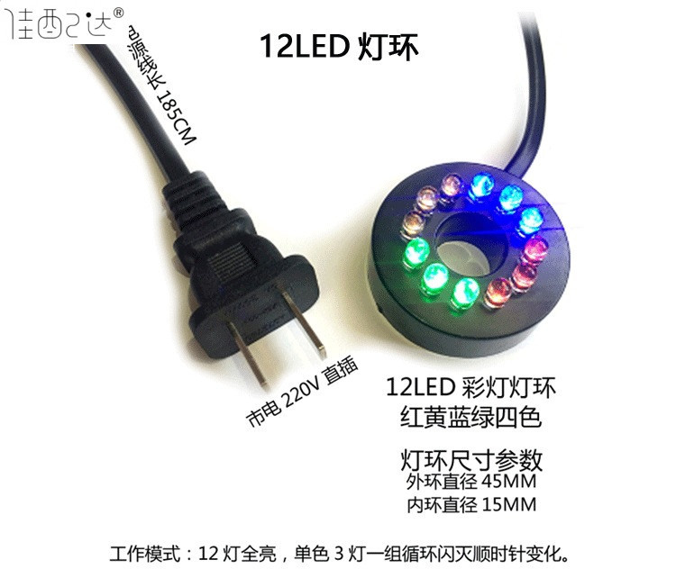 • 워터 펌프가 없는 스트레치 분수 파이프 슬리브 소형 + 12LED 소형 조명 링