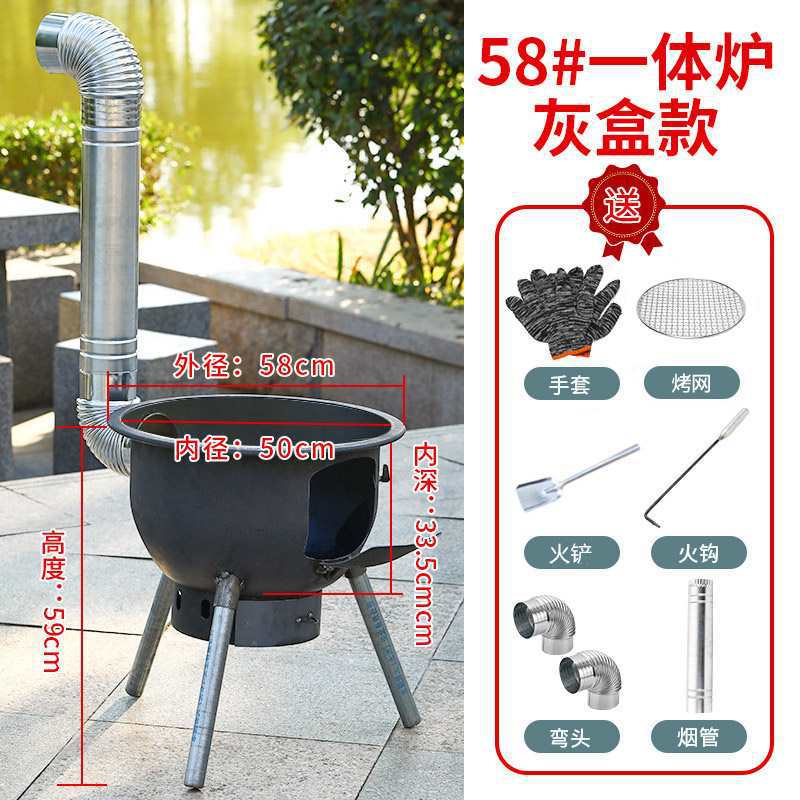 • 두꺼운 일체형 난로 58cm + 이중귀 냄비 + 난로 고리 + 선물 패키지