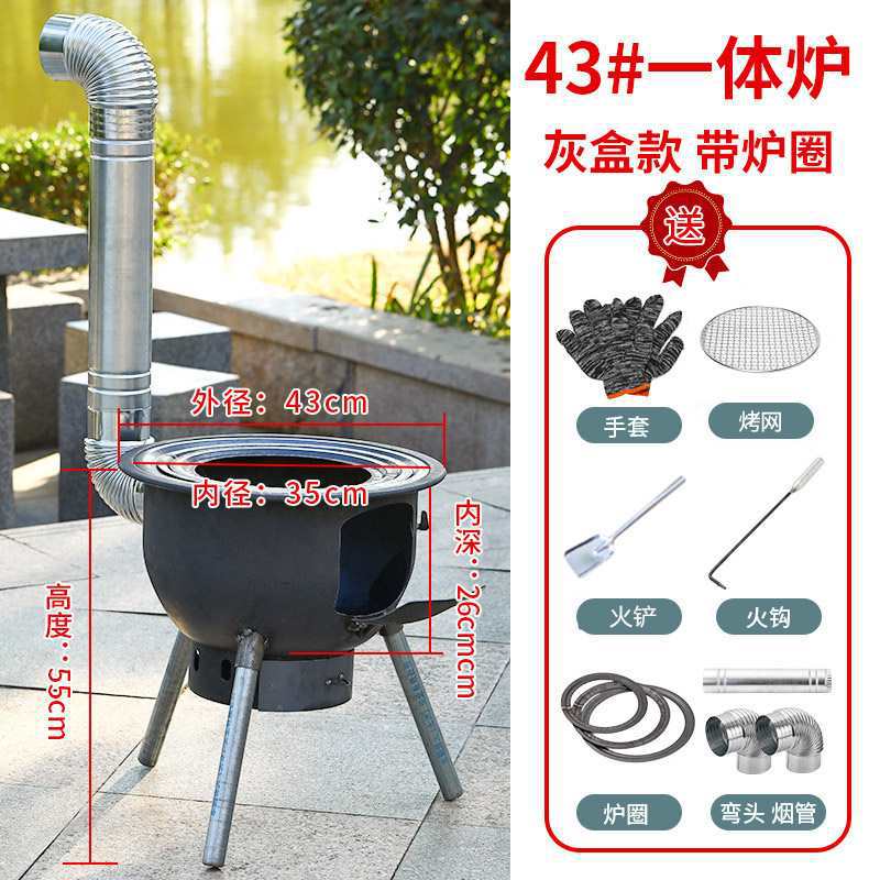 • ❤[가정용으로 추천]❤두꺼운 일체형 난로 48cm + 이중귀 냄비 + 난로 고리 + 선물 패키지
