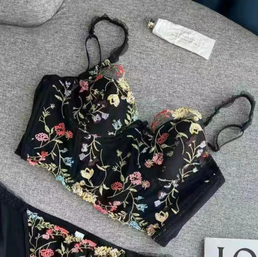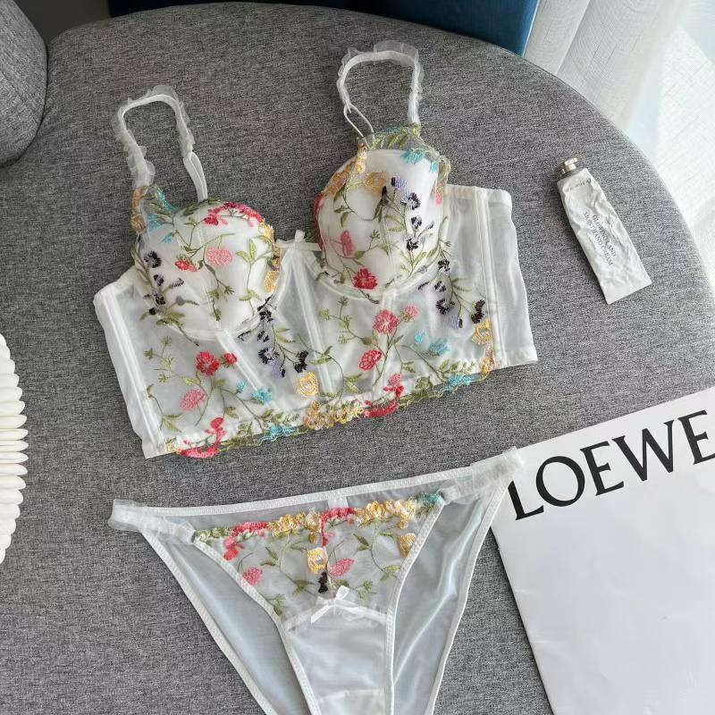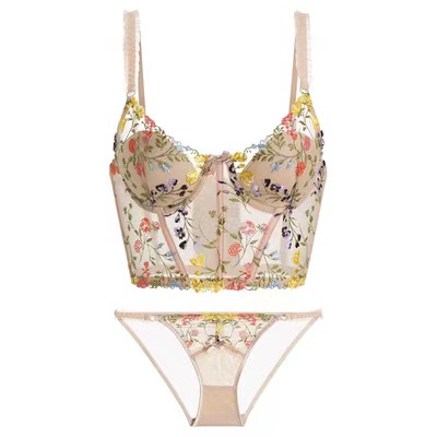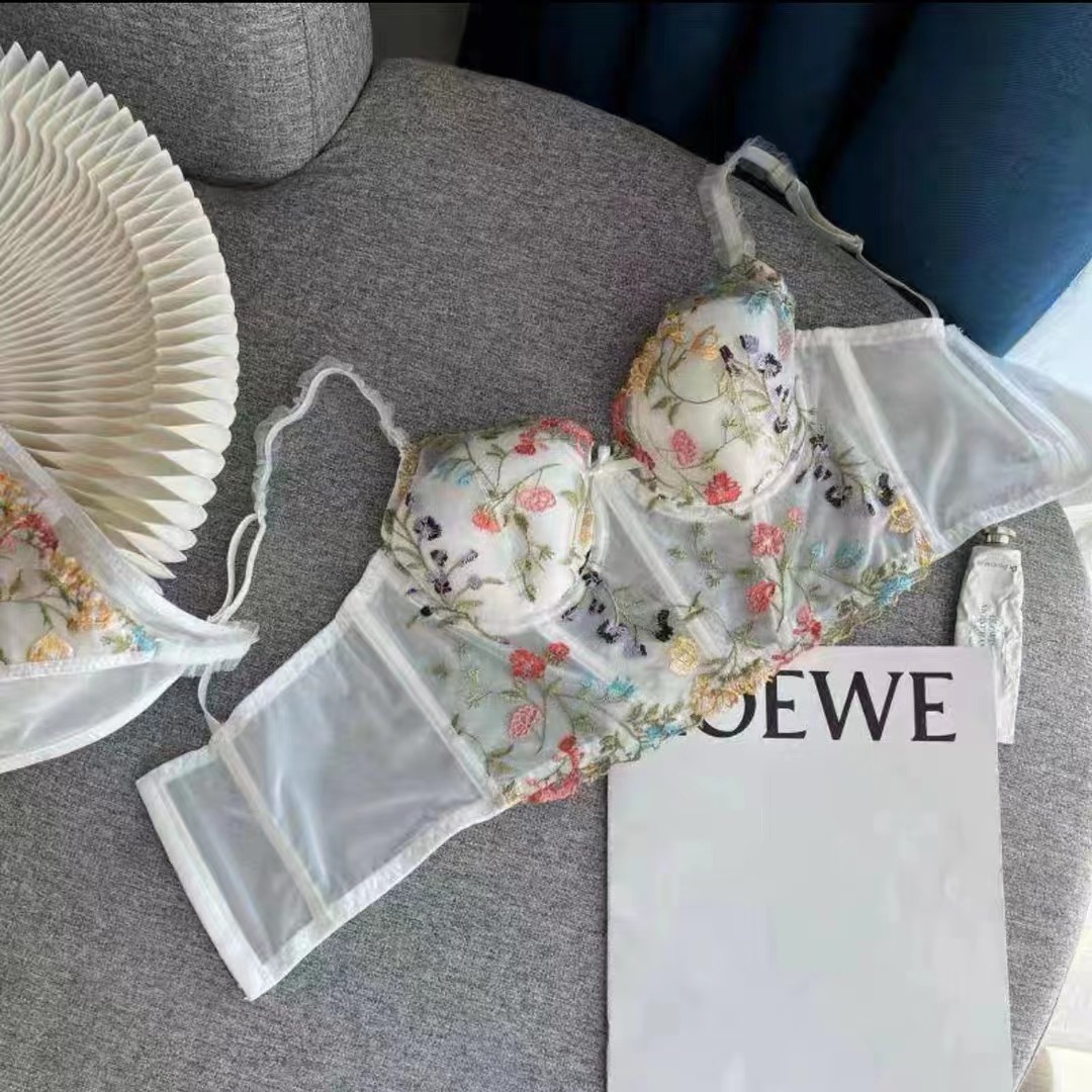 투명 판타지 원더 랜드 프랑스 레이스 브라 자수 꽃 슬링 브래지어 비 테두리 작은 프랑스 속옷스토어 가기