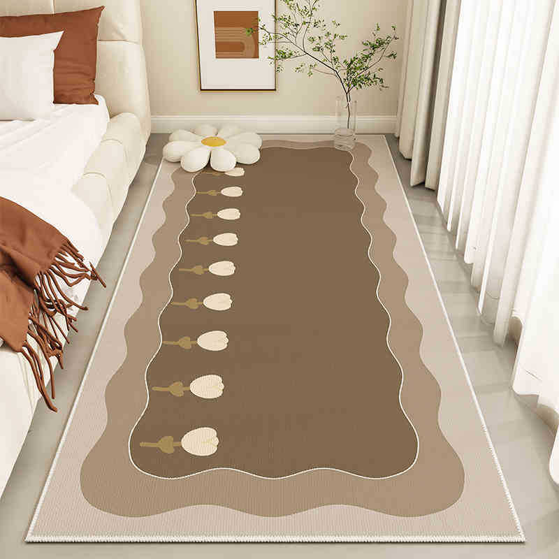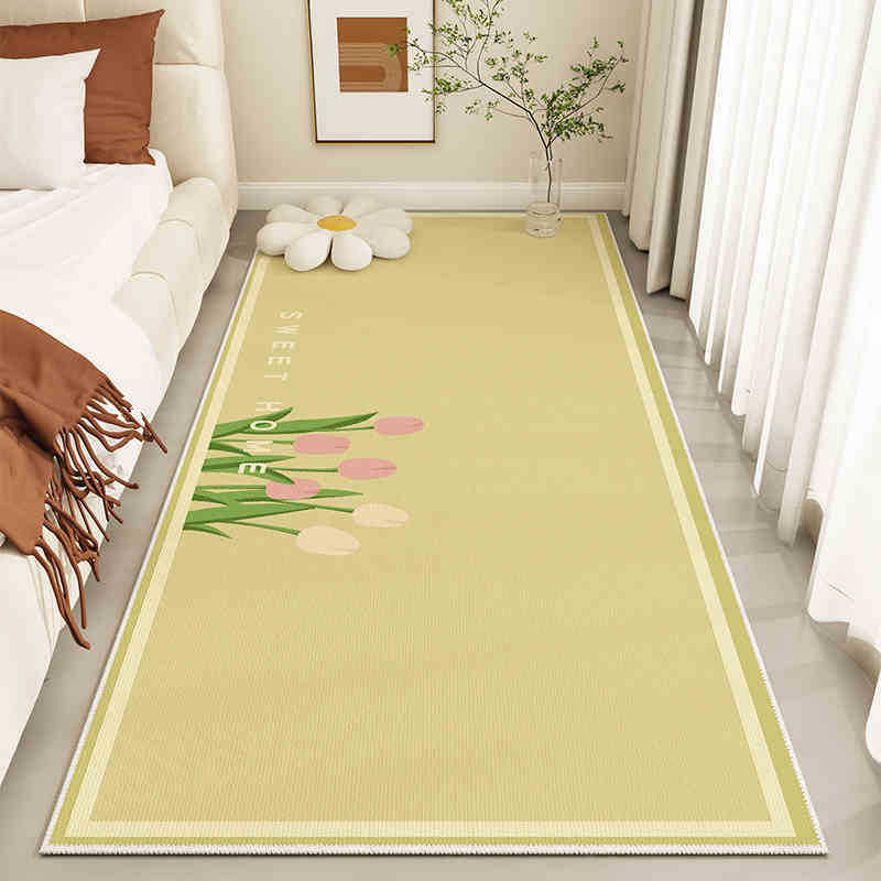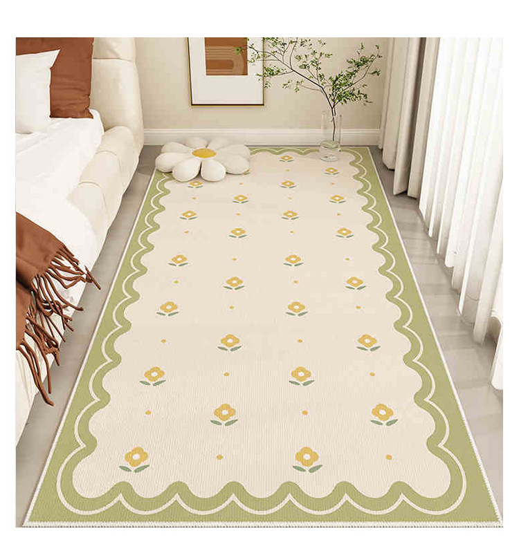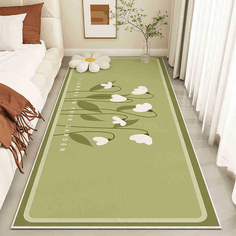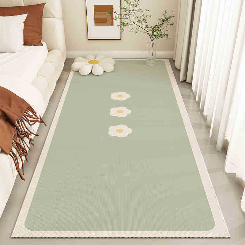 작은 신선한 카펫 침실 미끄럼 방지 내마모성 크리스탈 벨벳 침대 옆 담요 가정용 냉각, 흡수성, 먼지 방지 및 관리가 쉬운 카펫