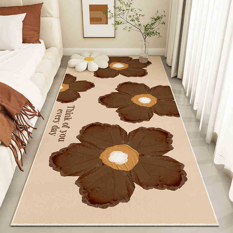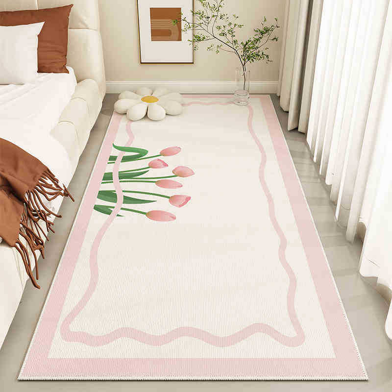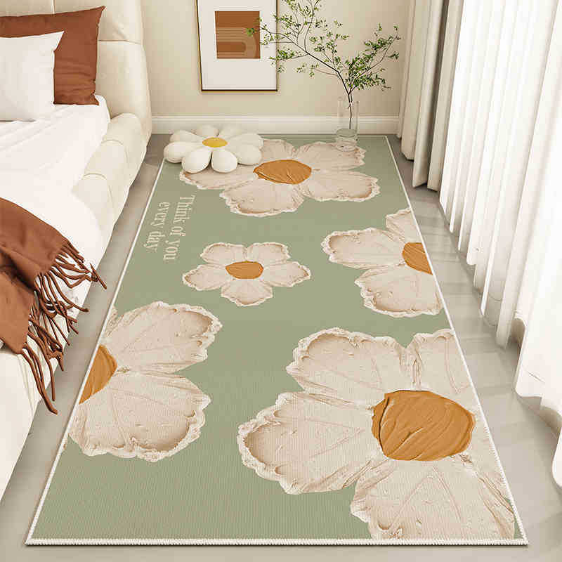 작은 신선한 카펫 침실 미끄럼 방지 내마모성 크리스탈 벨벳 침대 옆 담요 가정용 냉각, 흡수성, 먼지 방지 및 관리가 쉬운 카펫스토어 가기
