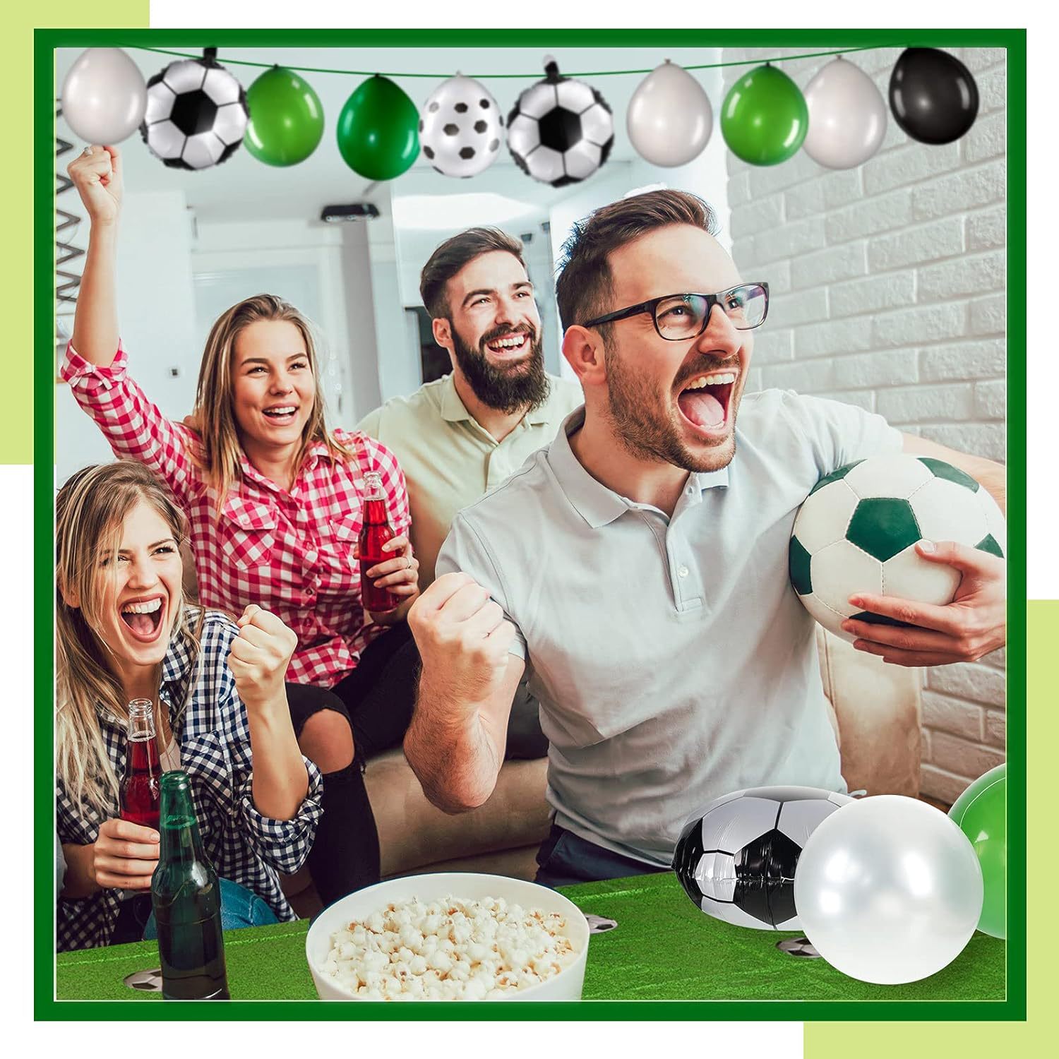 축구 풍선 세트 녹색 검정 흰색 라텍스 풍선 축구 인쇄 축구 파티 생일 기념일 샤워 장식