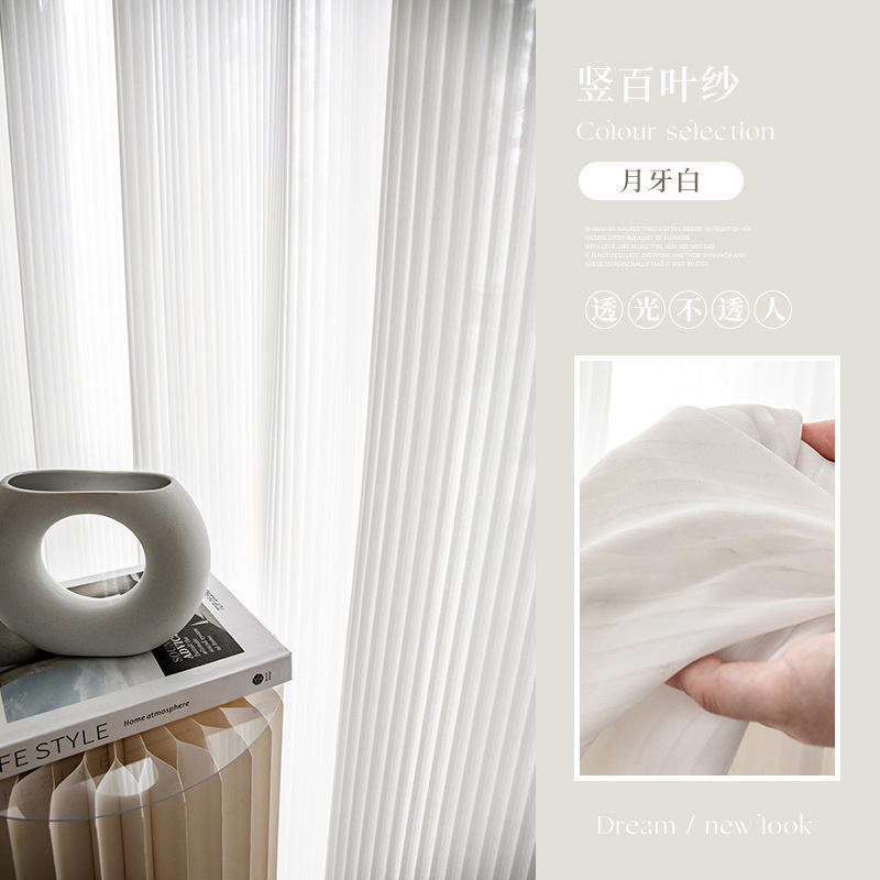 빛을 투과하지 않고 불투명한 크림색 수직 블라인드, 환상적인 커튼, 흰색 거즈 커튼, 발코니 자외선 차단제, 플로팅 창, 흰색 창문 스크린스토어 가기