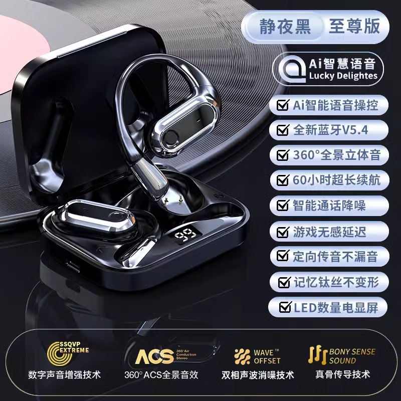 2025 새로운 스마트 아이 오픈 블루투스 헤드셋 귀 매달려 스마트 음성 음성 제어 소음 감소 스포츠 안티 드롭