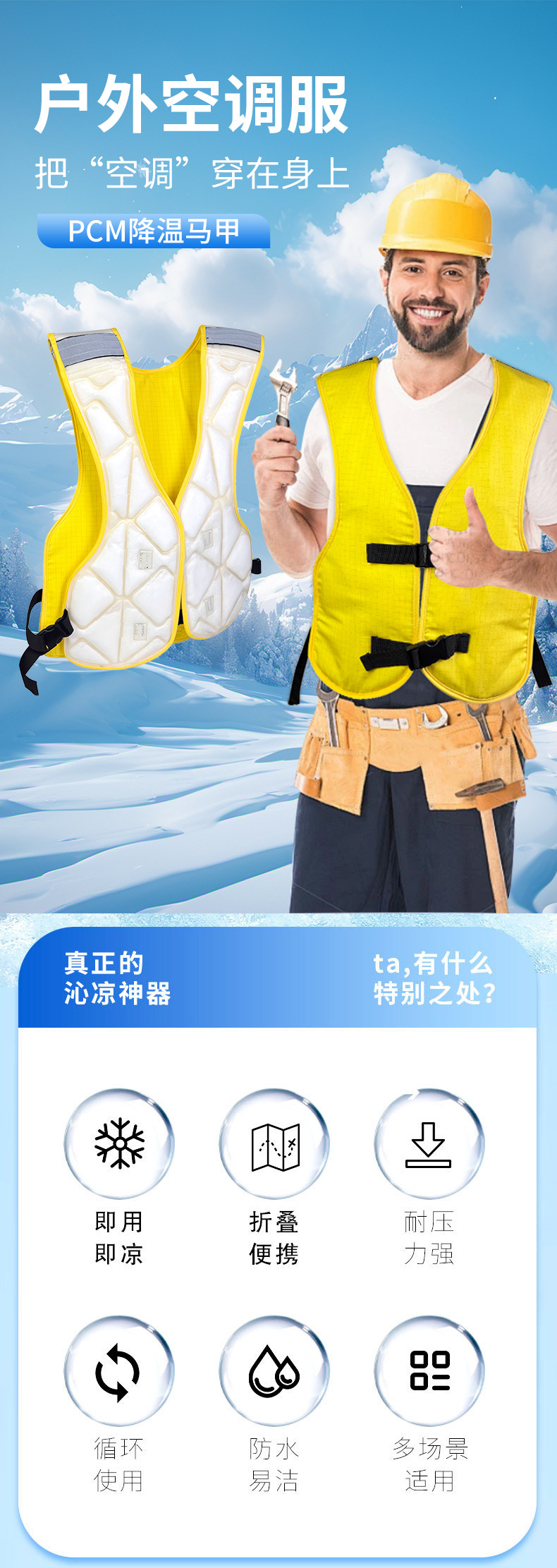 국경 간 새로운 냉각 조끼, 야외 스포츠 조끼, 에어컨 의류, PCM 냉각 여름 작업복, 냉각 조끼