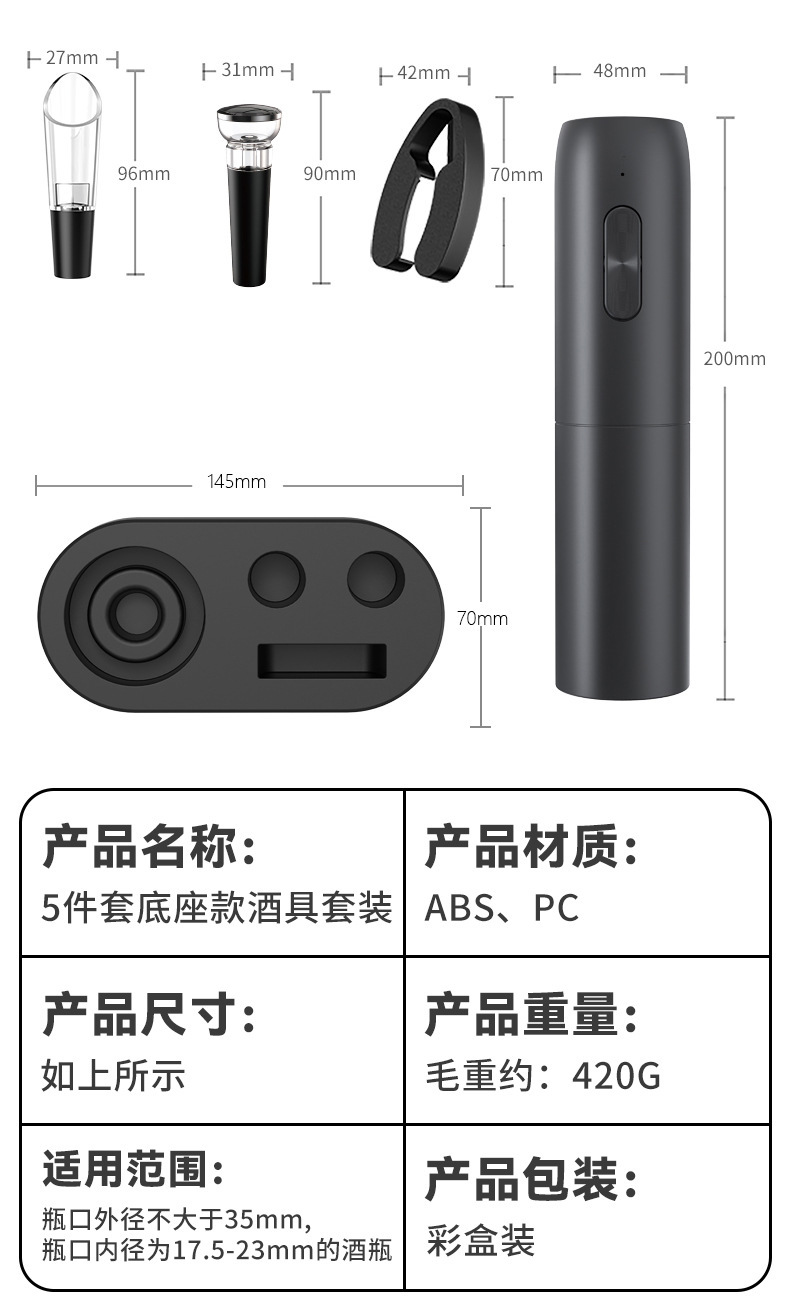 家用启瓶器葡萄酒起子USB开瓶器开酒神器 红酒启瓶器电动式倒酒器
