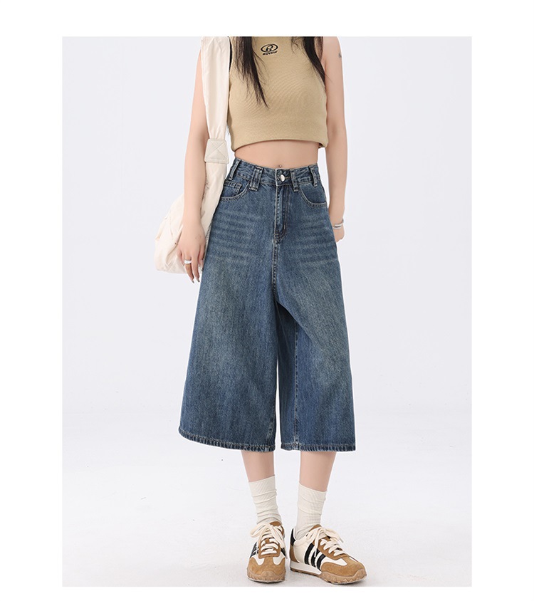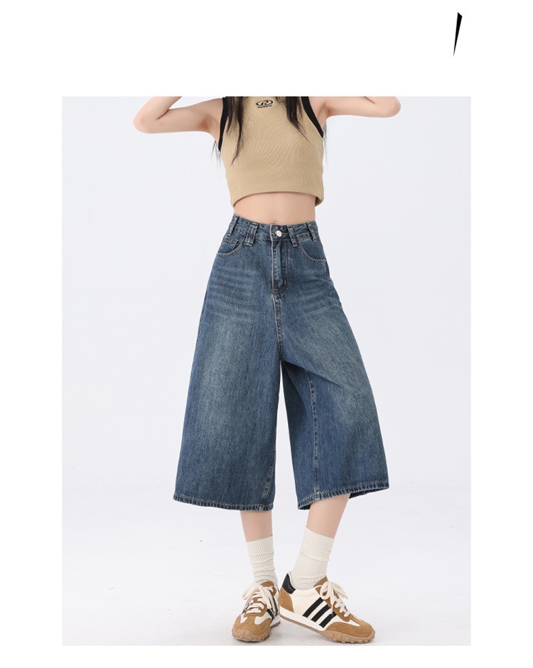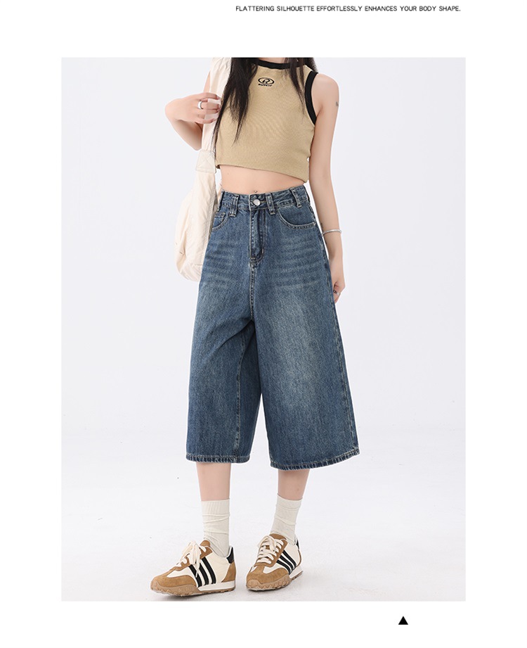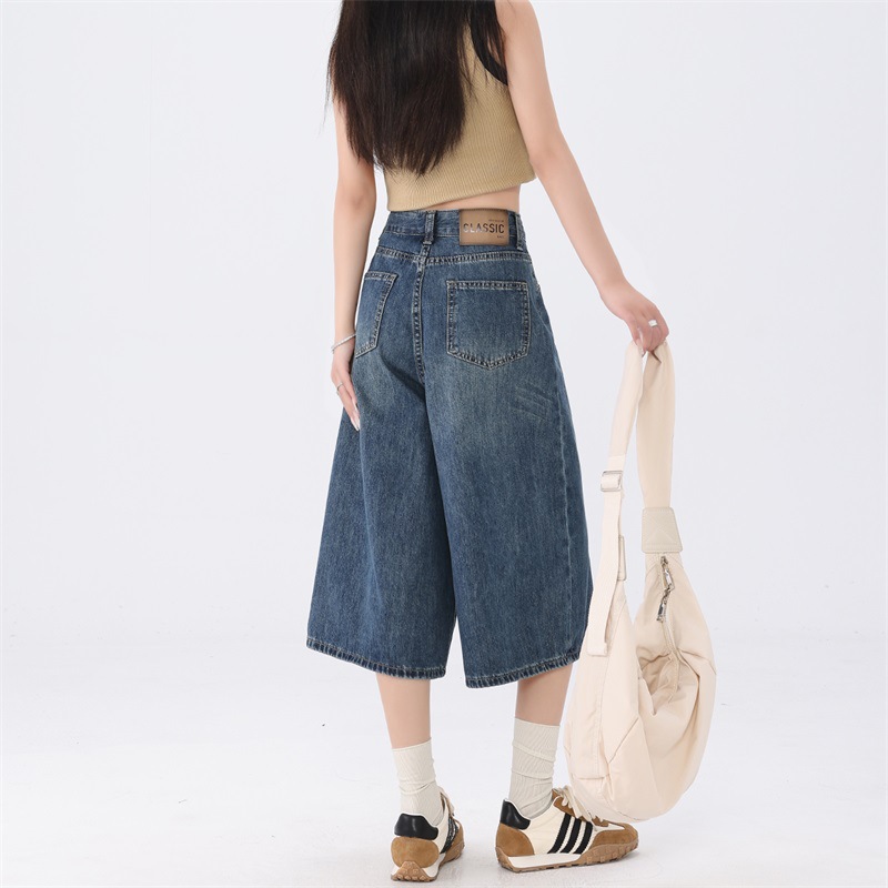 데님 반바지 여성 2025 최신 봄 및 여름 얇은 넓은 다리 느슨한 자른 슬리밍 스트레이트 짧은 바지스토어 가기