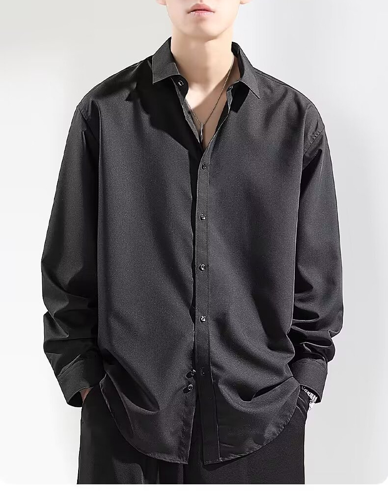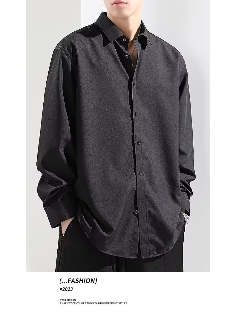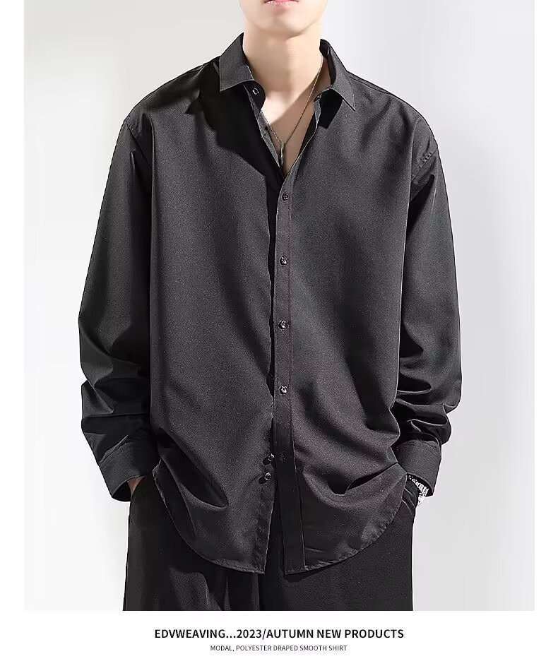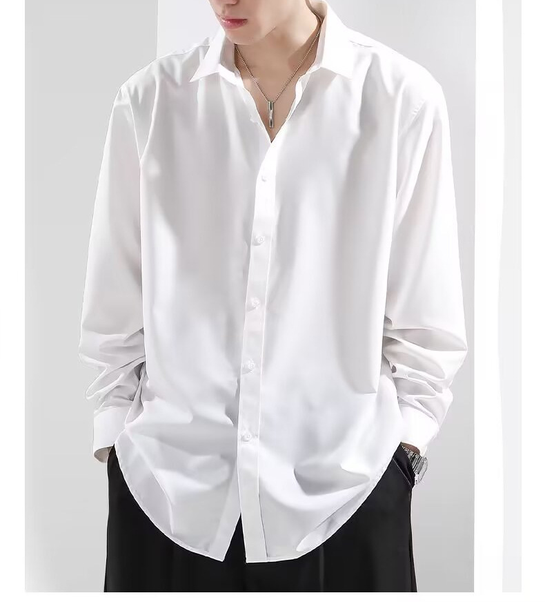여름 아이스 실크 셔츠 남성용 긴팔 화이트 캐주얼 셔츠 느슨한 플러스 사이즈 2024 하이 엔드 셔츠 얇은스토어 가기