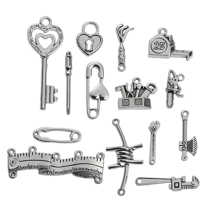 공장 직접 판매 국경 간 15 가지 도구 펜던트 도끼 DIY 복고풍 합금 쥬얼리 액세서리스토어 가기