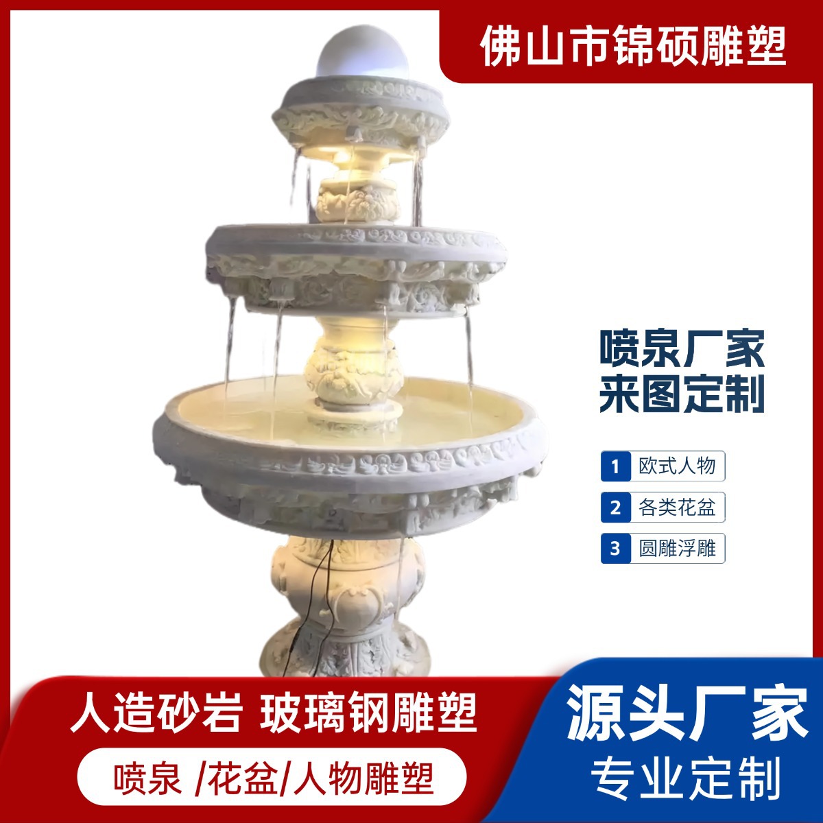 모조 석조 조각 흐르는 물 분수 문 수경 야외 호텔 안뜰 풍경 3층 폭포 유럽 스타일의 분수