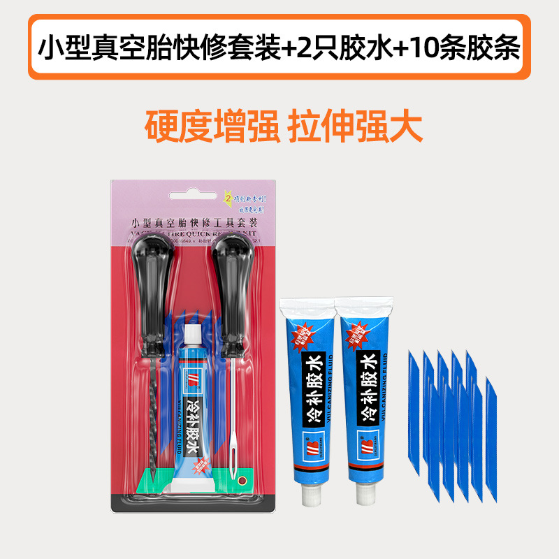 • 소형 튜브리스 타이어 빠른 수리 키트 + 접착제 2개 + 접착 스트립 10개