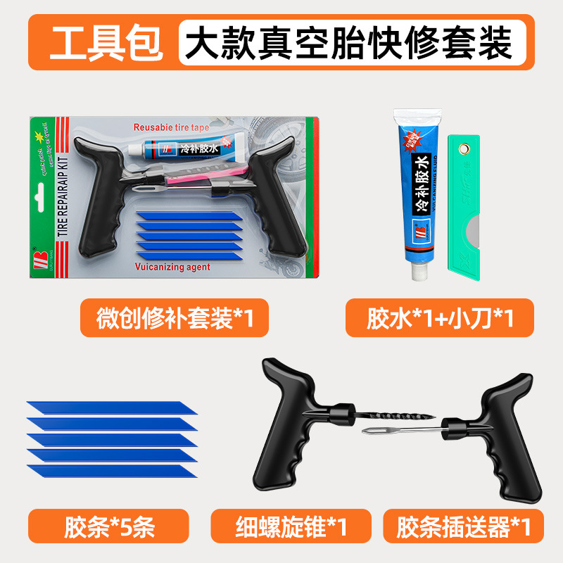 • 대형 튜브리스 타이어 비상 수리 키트 + 접착제 2개 + 접착 스트립 10개