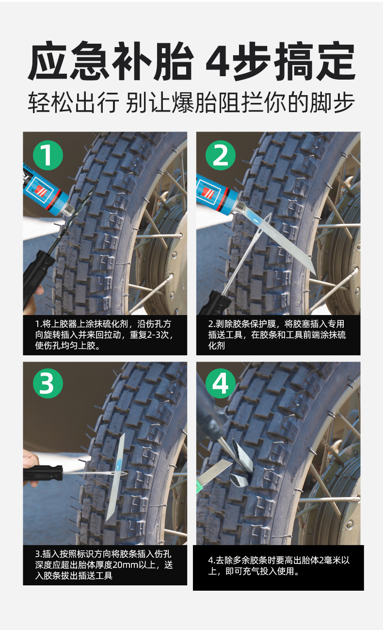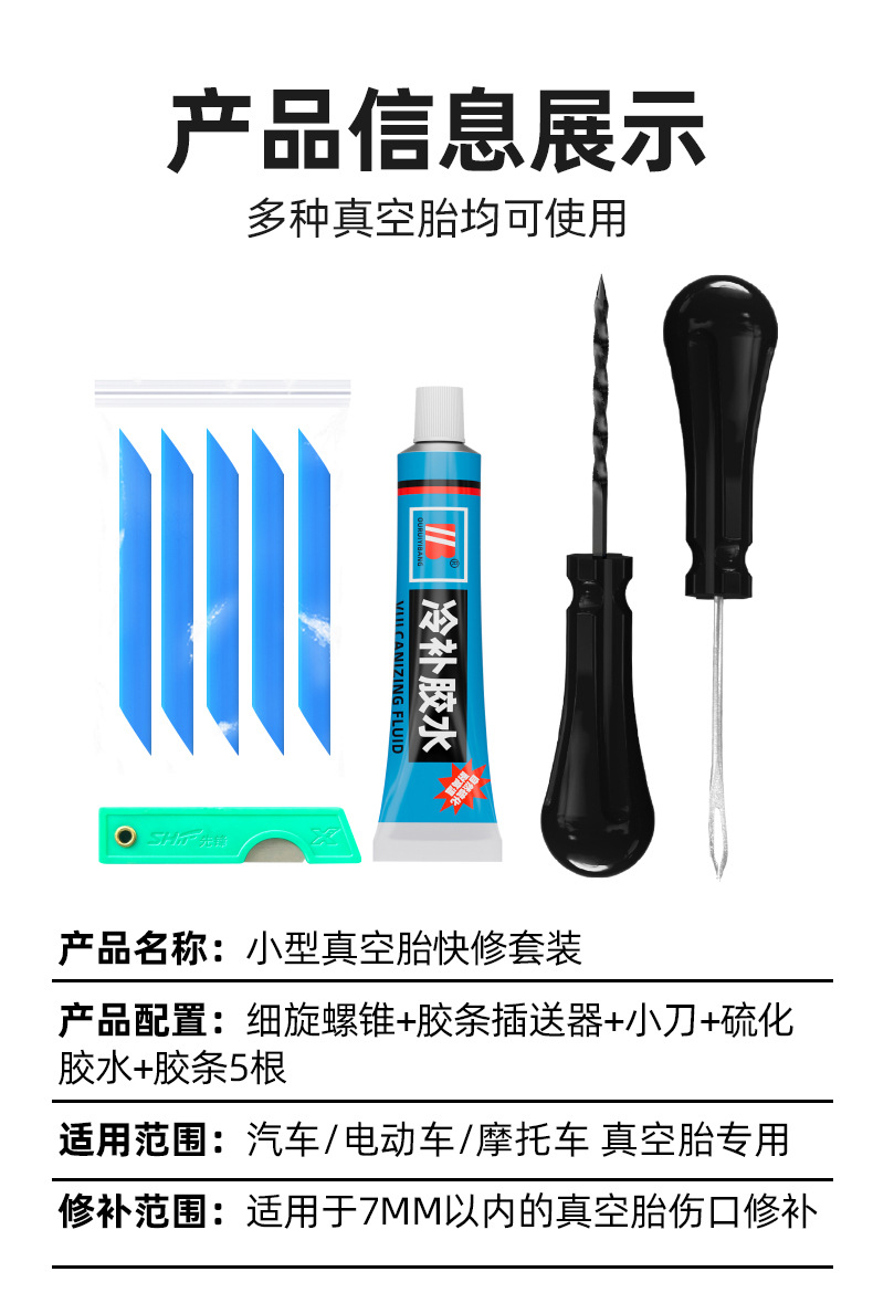 전기 자동차 진공 타이어 타이어 수리 도구 세트 가황 고무 스트립 오토바이 자전거 빠른 수리 도구스토어 가기